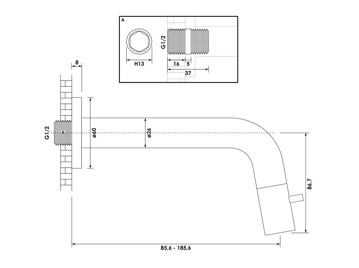 Je bedient de kraan met de hendel aan het uiteinde van de uitloop. Door de hendel naar rechts te draaien, activeer je de waterstraal. De kraan kan alleen aangesloten worden op koud water.