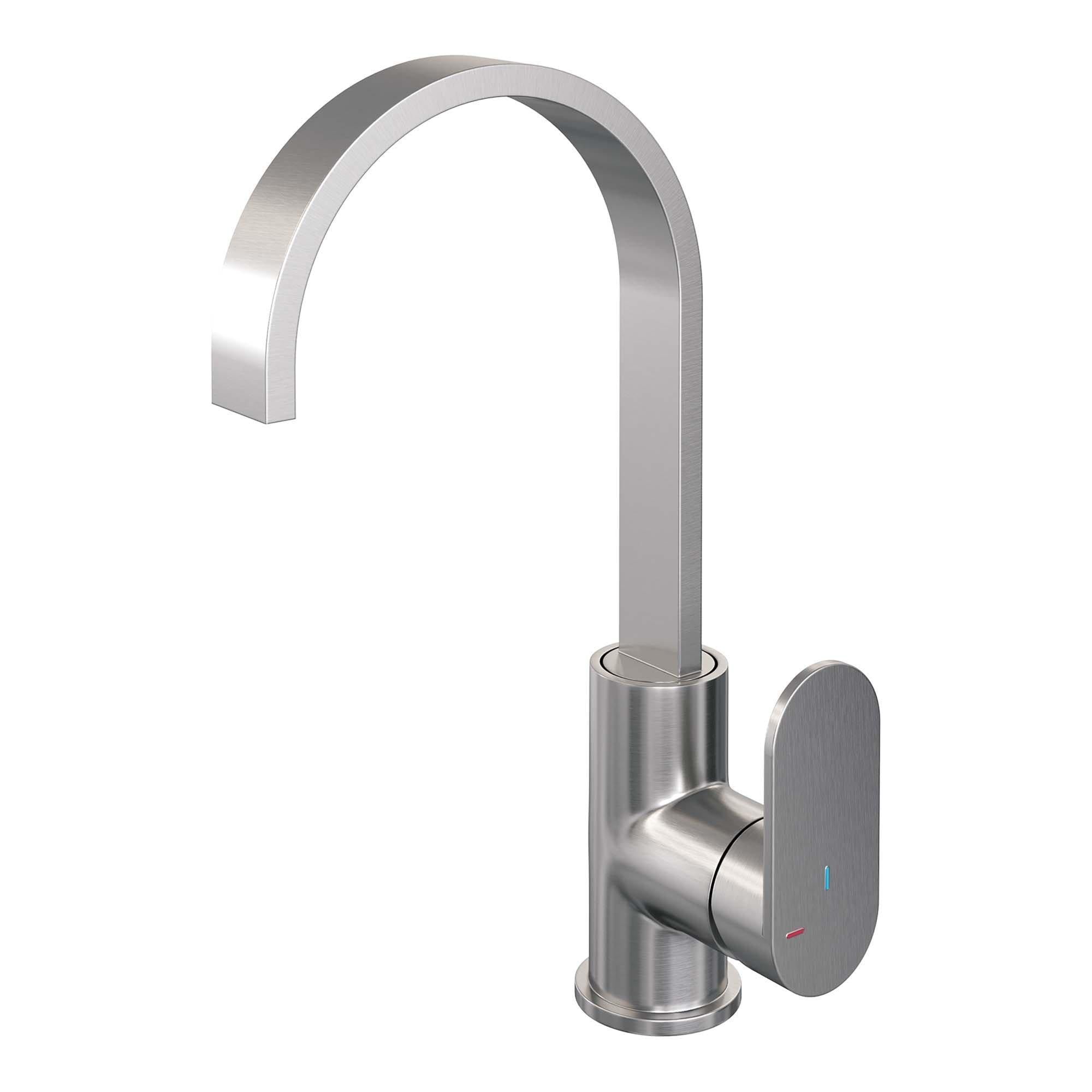 De Brauer Brushed - Edition Wastafelmengkraan opbouw straalt een moderne uitstraling uit dankzij zijn strakke lijnen en geborsteld roestvrijstalen afwerking. Het ontwerp is minimalistisch en eigentijds, waardoor het een tijdloze toevoeging is aan elke badkamer. De hoogte en draaibare functie van de kraan zorgen voor ultiem gemak en comfort tijdens het gebruik.