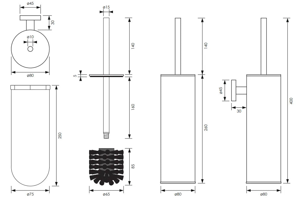 De set bestaat uit een handdoekhaak, toiletborstelset en closetrolhouder. De handdoekhaak heeft een diameter van 5 cm en komt 4 cm van de muur af. De toiletborstelset heeft een diameter van 8 cm en komt 11 cm van de muur af. De set is 40 cm hoog. De toiletrolhouder heeft een diameter van 2 cm en komt 7.5 cm van de muur af. De houder van de rol is 17.5 cm lang. Daarnaast is de set gemaakt van het hoogwaardige RVS304 materiaal. Een materiaal dat niet roest en jaren mee gaat. Erg handig voor een badkamer die niet zo maar verbouwd wordt en waar het vochtig is.