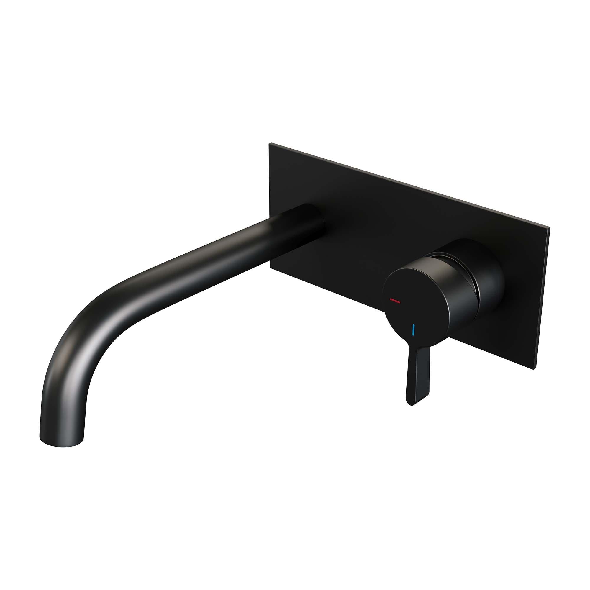 BRAUER Black Edition inbouw wastafelmengkraan met gebogen uitloop en afdekplaat model D1 mat zwart
