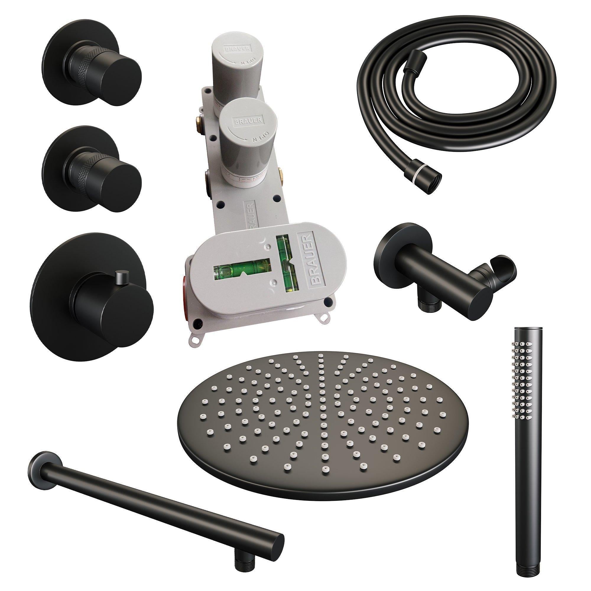 Deze prachtige Brauer Black Edition Regendoucheset inbouw zal een luxe uitstraling toevoegen aan jouw badkamer. Met een hoofddouche van 30 cm, 3 gladde knoppen, een rechte wandarm en een handdouche staaf in mat zwart, combineert dit set stijl met functionaliteit op een unieke manier. Geniet van een ontspannende douche-ervaring met deze hoogwaardige inbouw regendoucheset.