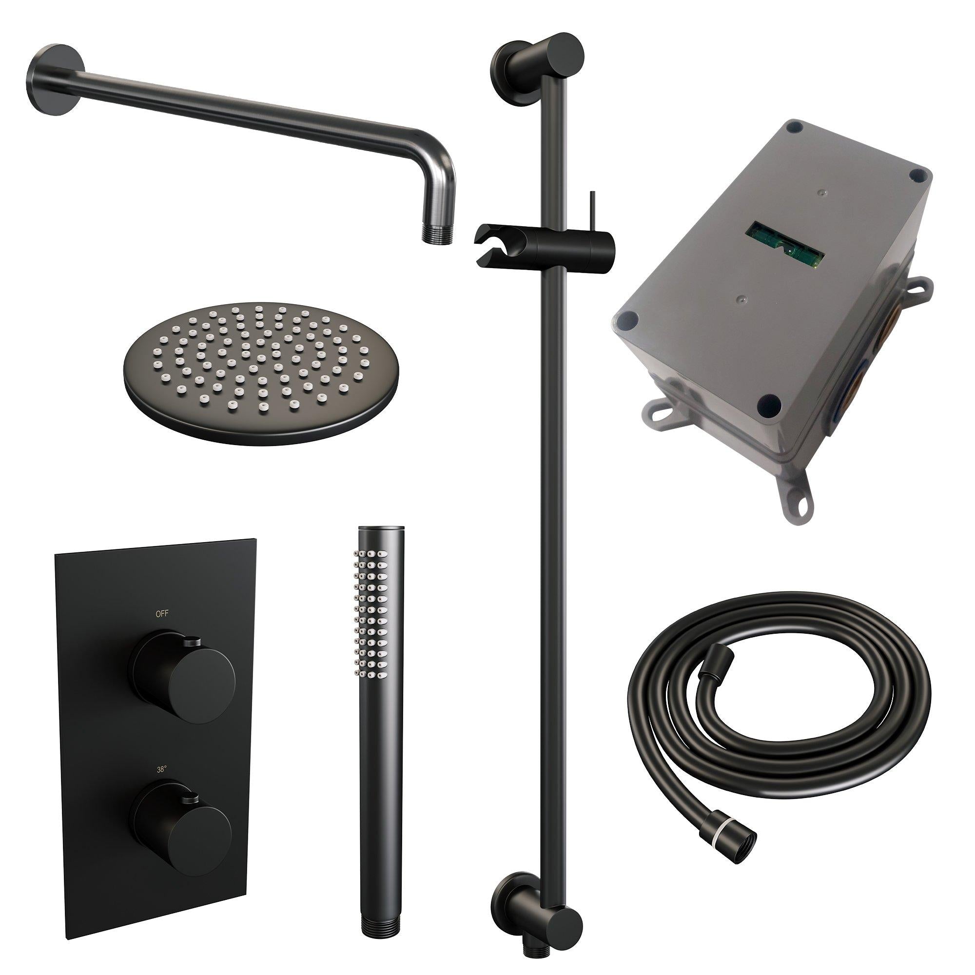 Op zoek naar extra luxe in de badkamer? Kies voor een inbouw regendouche in mat zwart! Een regendouche geeft het gevoel van een zomerse regenbui op de huid, waardoor je compleet ontspant. De Brauer Black Edition regendouche is van alle gemakken voorzien: omstel thermostaat, handdouche en regendouche van 20 cm met wandarm.