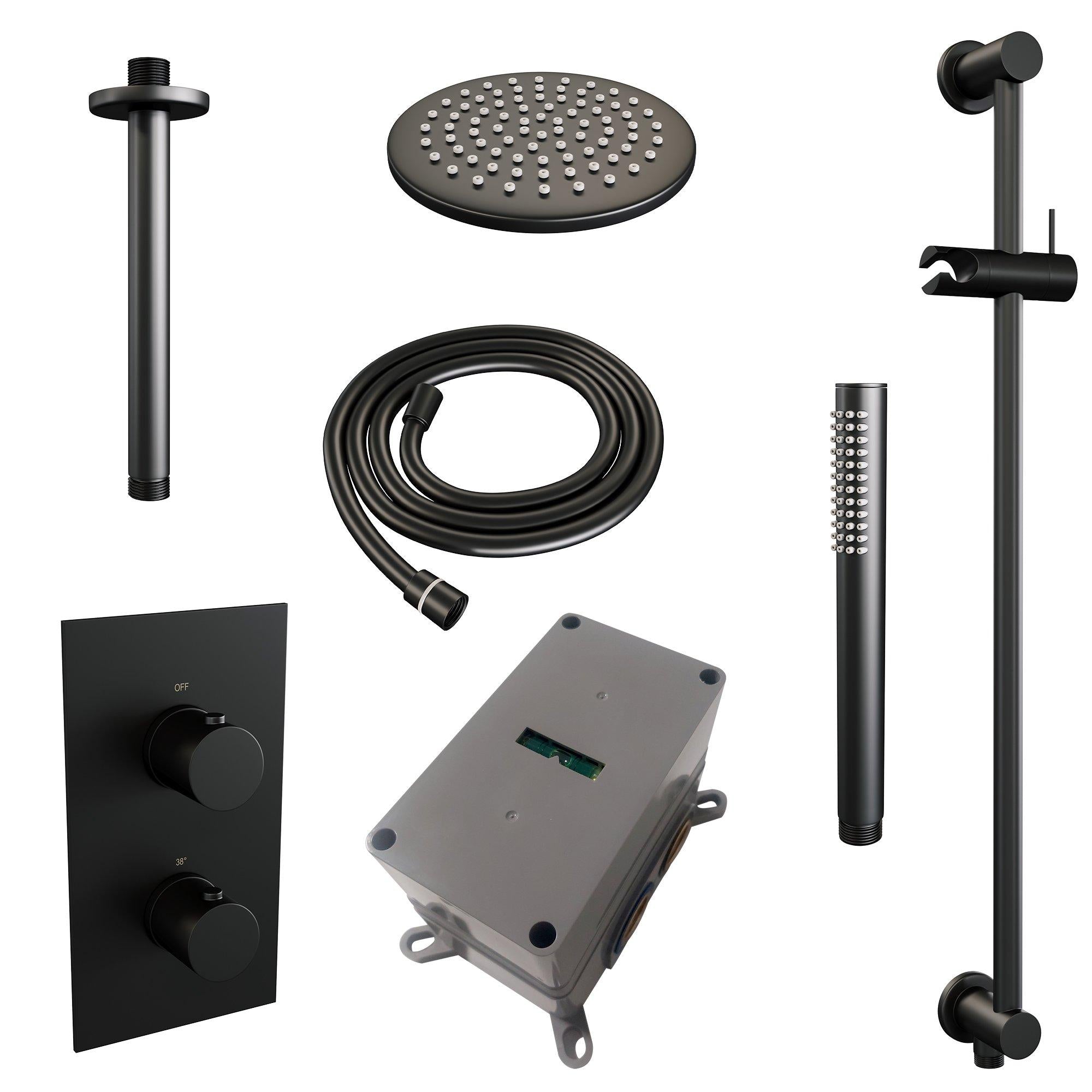 De Brauer Black Edition Regendoucheset straalt stijl en elegantie uit met zijn mat zwarte afwerking. Het moderne design past perfect in zowel klassieke als eigentijdse badkamers. De combinatie van de hoofddouche, plafondarm en glijstang zorgt voor een harmonieus geheel dat de uitstraling van jouw badkamer naar een hoger niveau tilt.