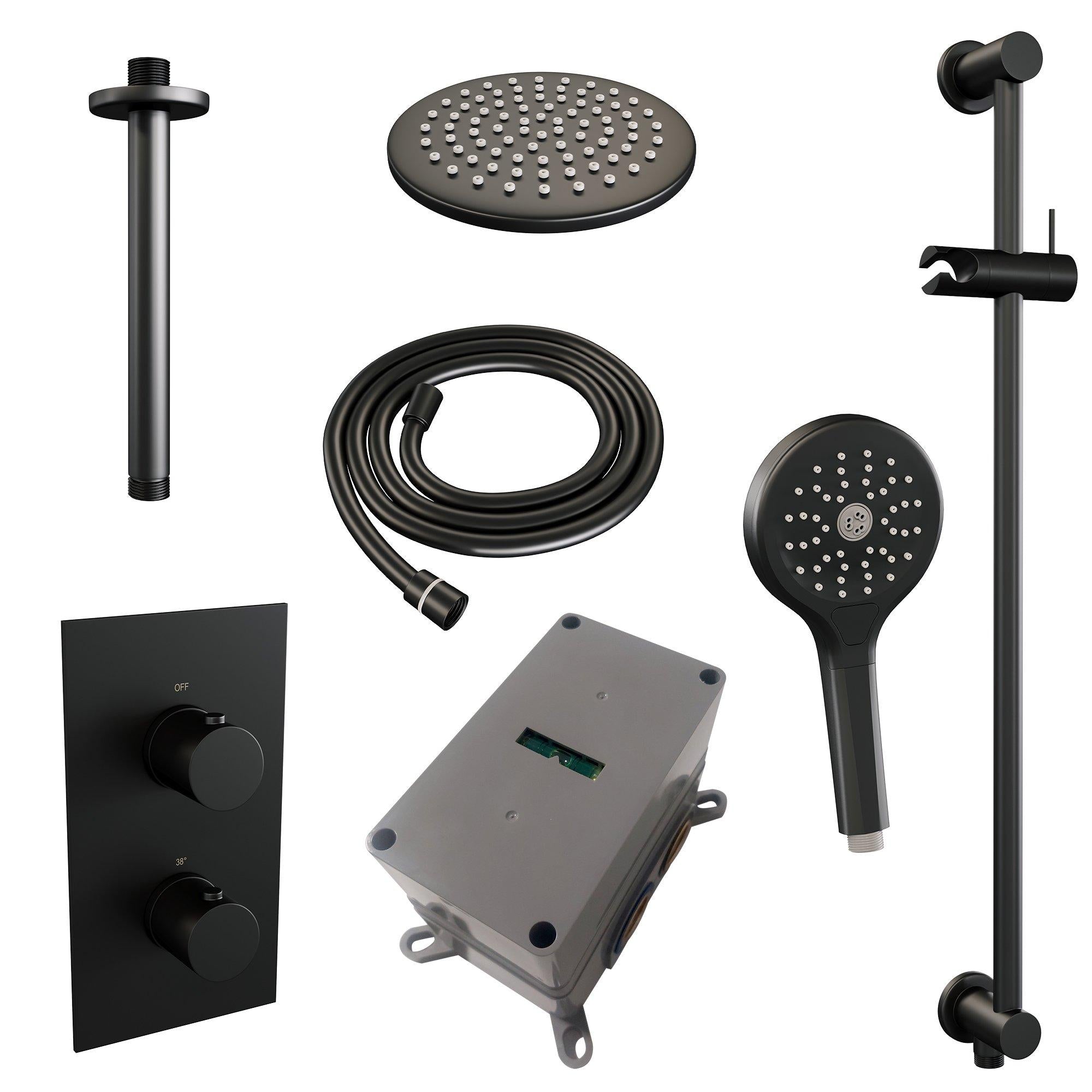 De Brauer Black Edition Regendoucheset inbouw onderscheidt zich door zijn stijlvolle matzwarte afwerking. Deze kleur geeft een eigentijdse uitstraling aan je badkamer en past perfect bij moderne interieurs. De strakke lijnen en het minimalistische ontwerp van deze doucheset voegen een vleugje elegantie toe aan elke doucheruimte, waardoor je dagelijkse douche-ervaring een luxe tintje krijgt.