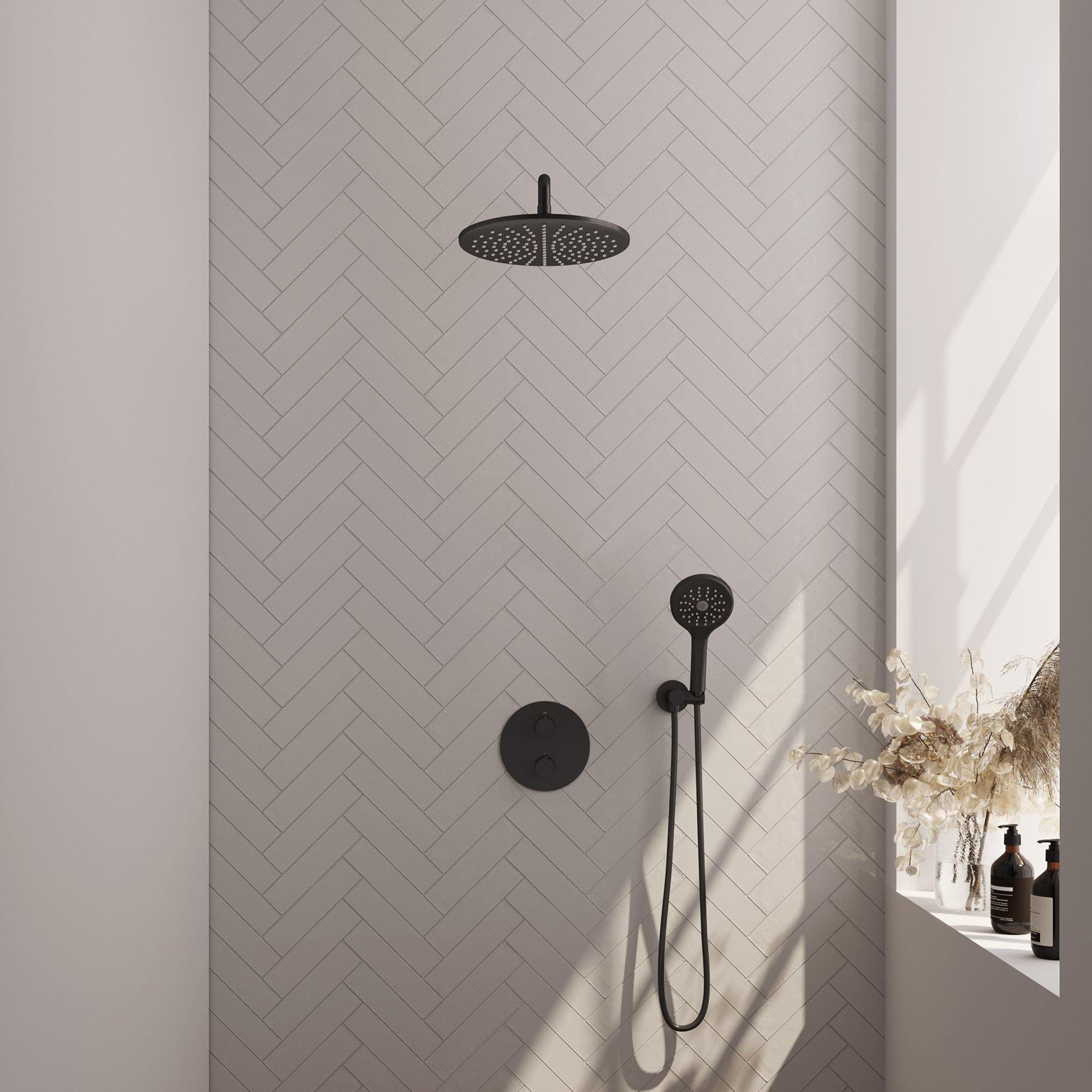 De BRAUER Black Edition thermostatische Inbouw Regendouche is een prachtig stukje vakmanschap dat een vleugje elegantie toevoegt aan elke badkamer. Met zijn matzwarte afwerking en strakke lijnen, is dit douchesysteem een ware blikvanger. Geniet van een luxueuze douche-ervaring met de 30cm hoofddouche, de 3-standen handdouche en de gebogen muurarm. De thermostatische functie zorgt voor een constante watertemperatuur, terwijl de 3-weg omstelkraan je de keuze geeft tussen de hoofddouche, handdouche of beide. Dit set 82 bevat alles wat je nodig hebt voor een complete douche-ervaring, van de doucheslang tot de wandaansluitbocht.