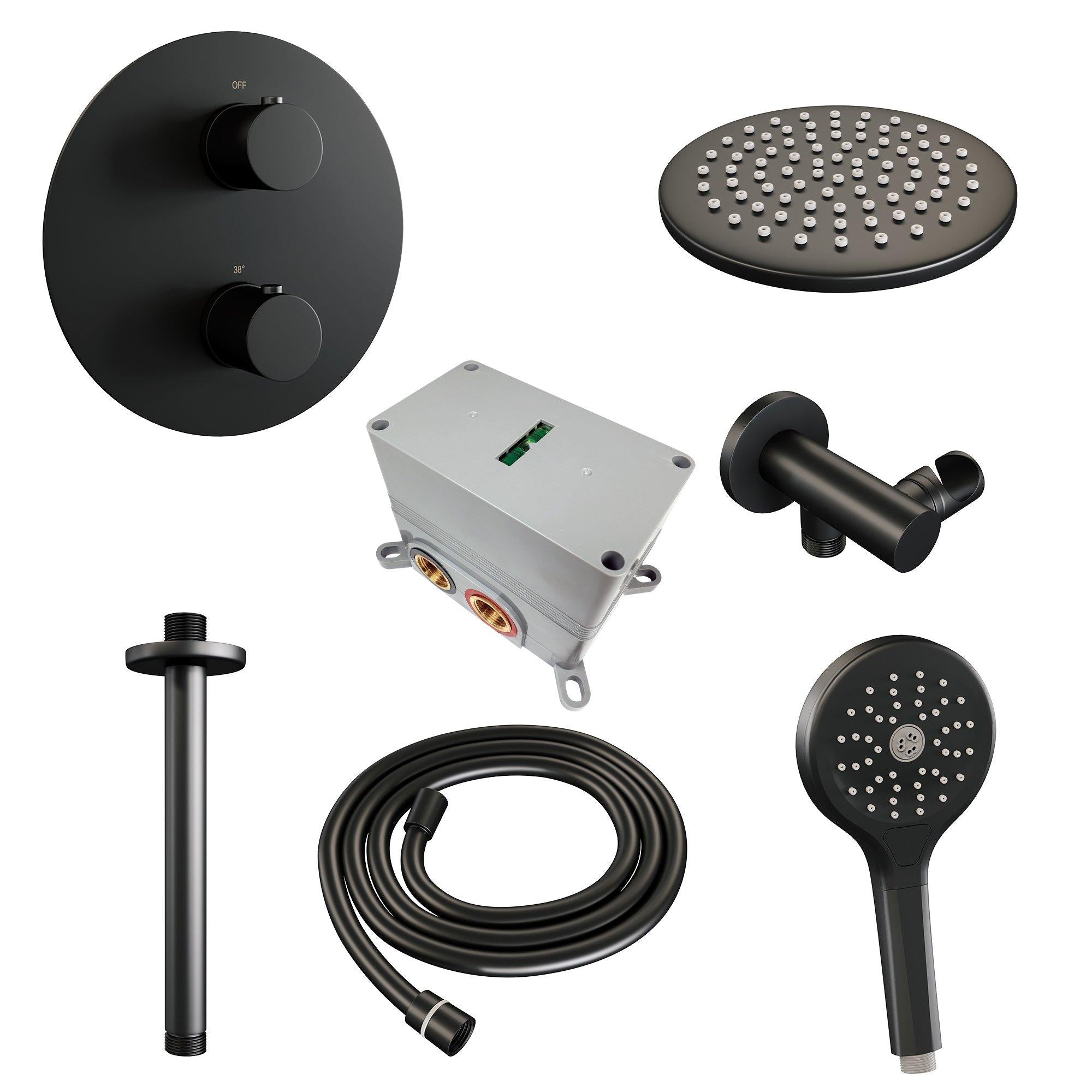 Deze regendouche set straalt stijl en elegantie uit. Het ronde ontwerp en de mat zwarte afwerking geven een moderne uitstraling aan jouw badkamer. De set is zorgvuldig ontworpen met oog voor detail, waardoor het een ware blikvanger is in de ruimte. Met de 20cm hoofddouche en 3-standen handdouche, biedt deze set zowel comfort als functionaliteit.