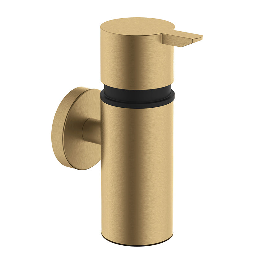 Deze Wiesbaden Alonzo zeepdispenser in de kleur geborsteld messing is niet alleen handig maar ook stijlvol. Het kunststof reservoir (90 ml) vul je gemakkelijk met je favoriete zeep en bovendien is het uitneembaar waardoor je het altijd gemakkelijk kan reinigen. Verder heeft de dispenser een kunststof pomp waardoor deze nooit zal roesten en je er jarenlang plezier van hebt. Tenslotte is de zeeppomp gemaakt van hoogwaardige materialen en bevestig je hem eenvoudig aan de wand met de meegeleverde schroeven en Fischer pluggen. Combineer de zeepdispenser met andere accessoires uit de Alonzo serie en maak één geheel van je badkamer of toilet.