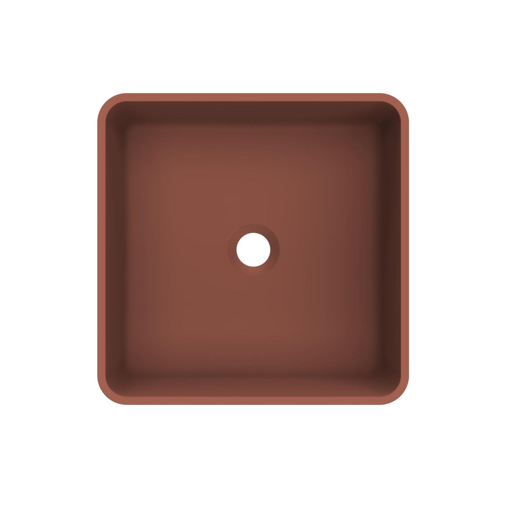 Naast zijn esthetische aantrekkingskracht is deze opbouw waskom ook uiterst functioneel. Met een ruime afmeting van 37x37cm biedt het voldoende ruimte voor dagelijks gebruik, terwijl het vierkante ontwerp een eigentijdse touch toevoegt aan elke badkamer. De mat terracotta afwerking voegt een warme en uitnodigende sfeer toe aan de ruimte.