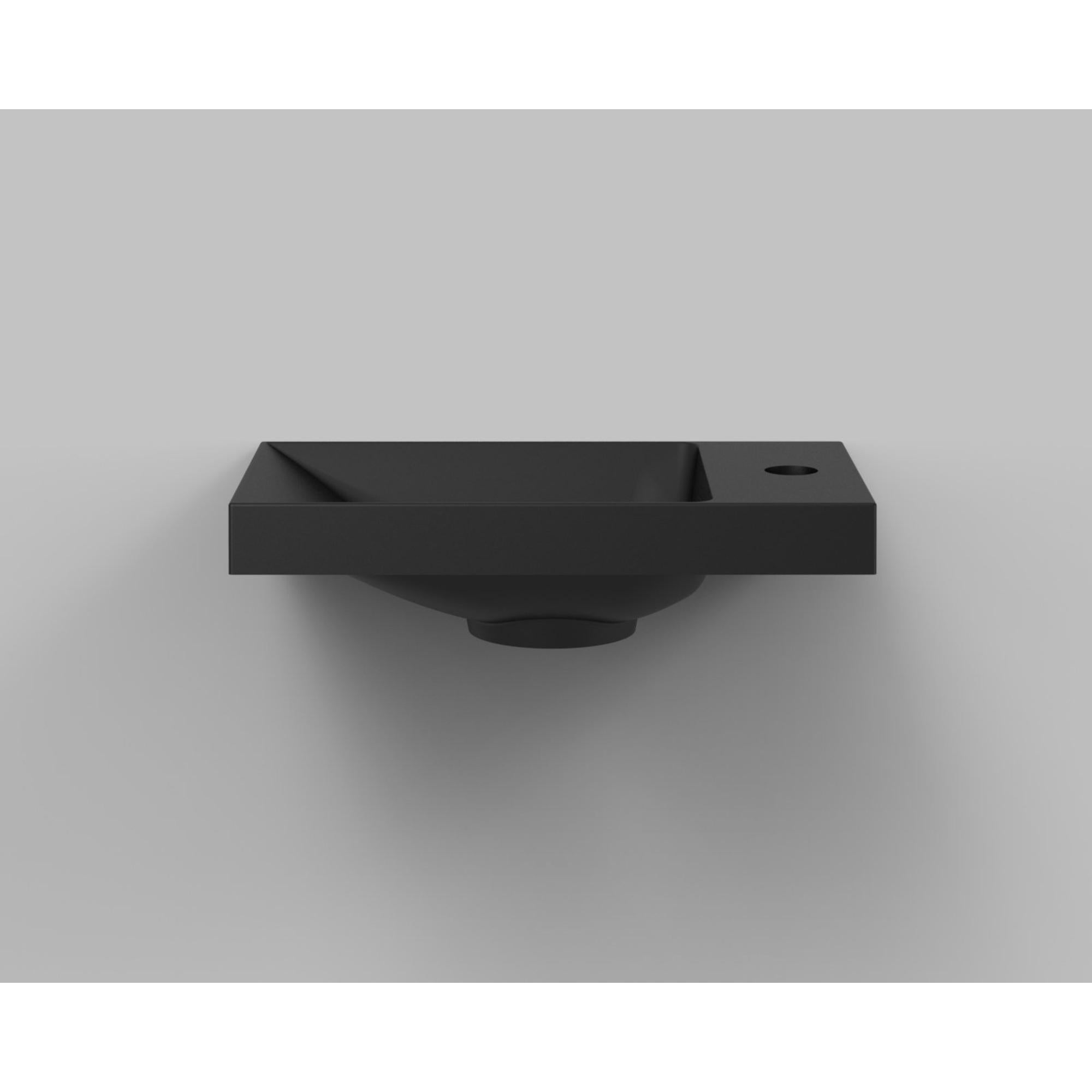 Arqua Marble fontein 40x22 mat zwart cast marble zonder overloop. 1 kraangat, links en rechts toepasbaar.