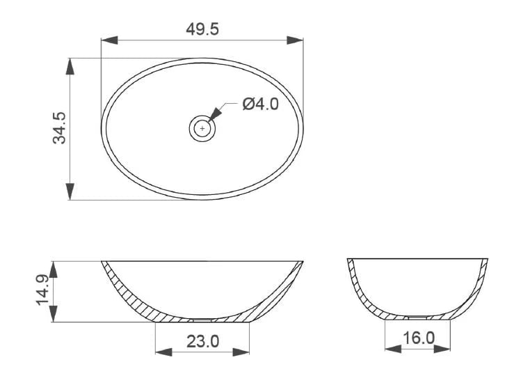 De waskom heeft een diepte van 34 cm en heeft een breedte van 49 cm. de waskom heeft een hoogte van 14,9 cm.