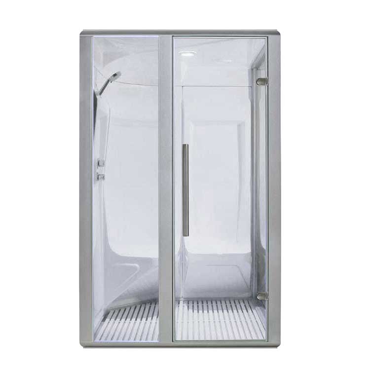 • Achterwanden en plafond gemaakt van hoogwaardig acryl van Aristech (VS) met antibacterieel oppervlak in wit (optioneel zijn 7 verschillende kleuren verkrijgbaar die passen bij onze buitenzwembaden)