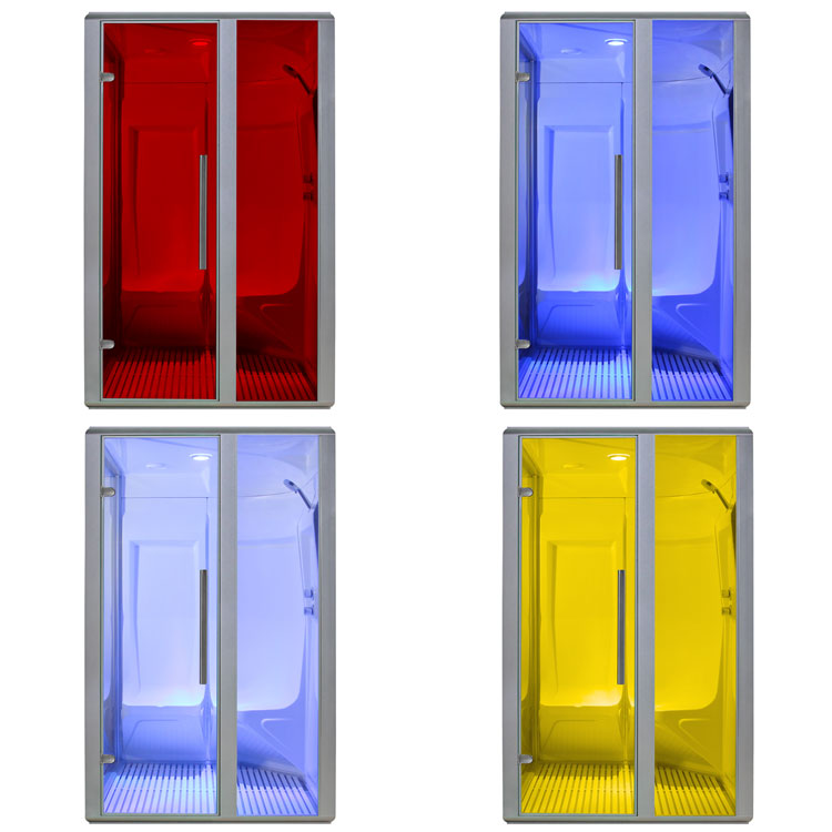 • Achterwanden en plafond gemaakt van hoogwaardig acryl van Aristech (VS) met antibacterieel oppervlak in wit (optioneel zijn 7 verschillende kleuren verkrijgbaar die passen bij onze buitenzwembaden)