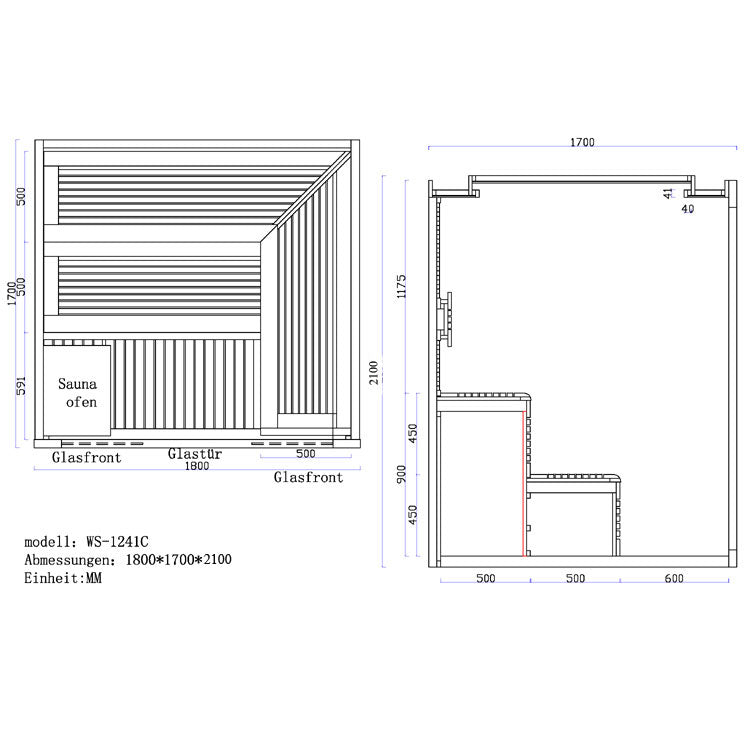 AWT Sauna B1241C red cedar 180x170 9kW EOS BiO-Thermat