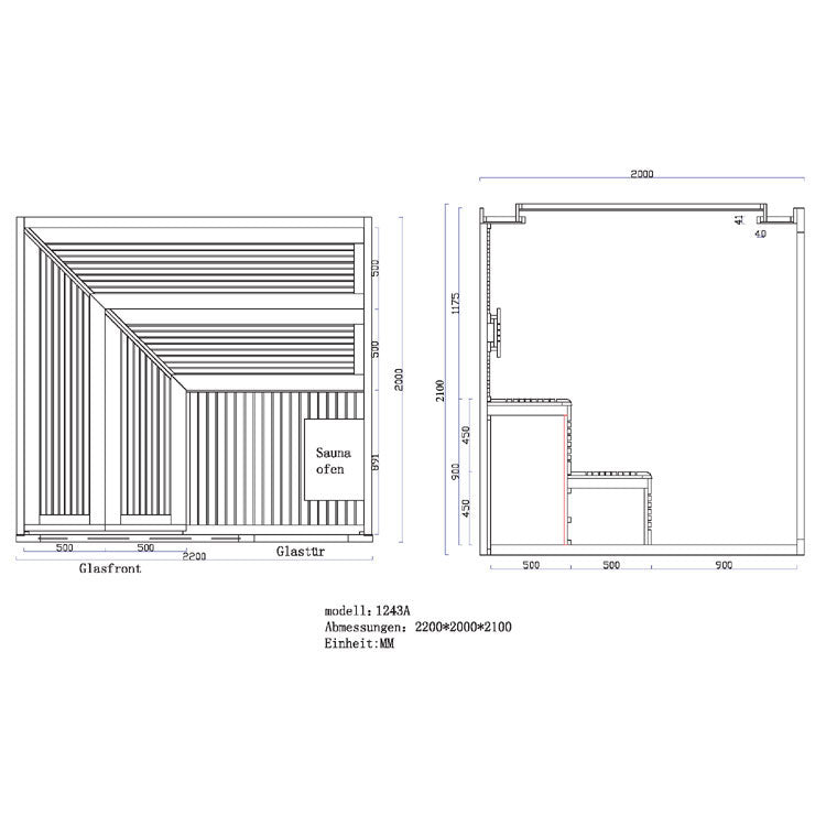 AWT Sauna E1243A rote Zeder 220x200 9kW Kivi