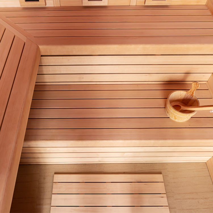 • Afgewerkt met hoogwaardig hemlockhout (Canadese hemlock)