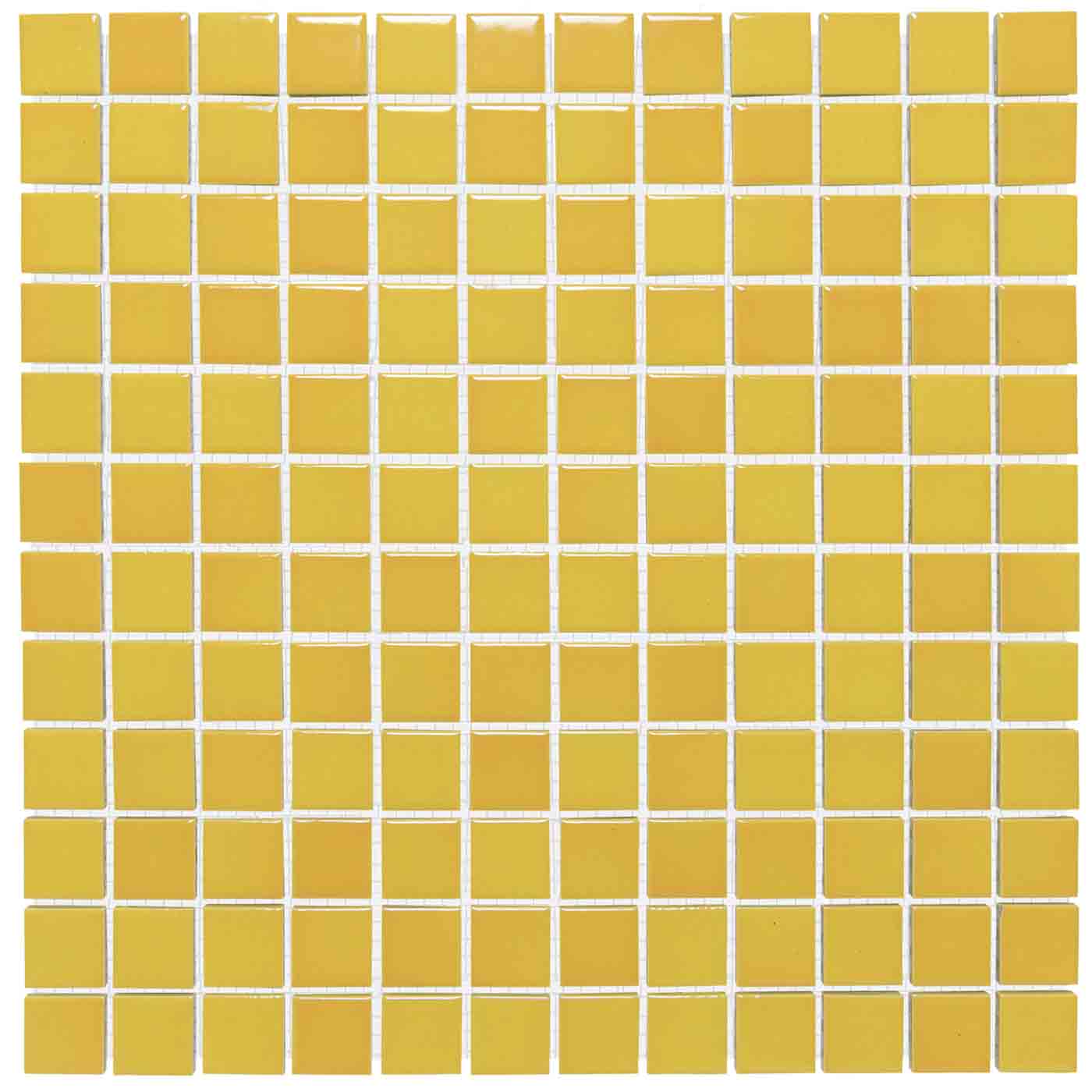 Deze mooie Vierkant mozaïek tegel met de kleur Geel gevlamd uit de serie Barcelona is gemaakt van Geglazuurd Porselein met een Glanzend finish. Deze tegel is geschikt voor: Badkamer, Keuken, Toilet, Zwembad, Sauna, Buiten