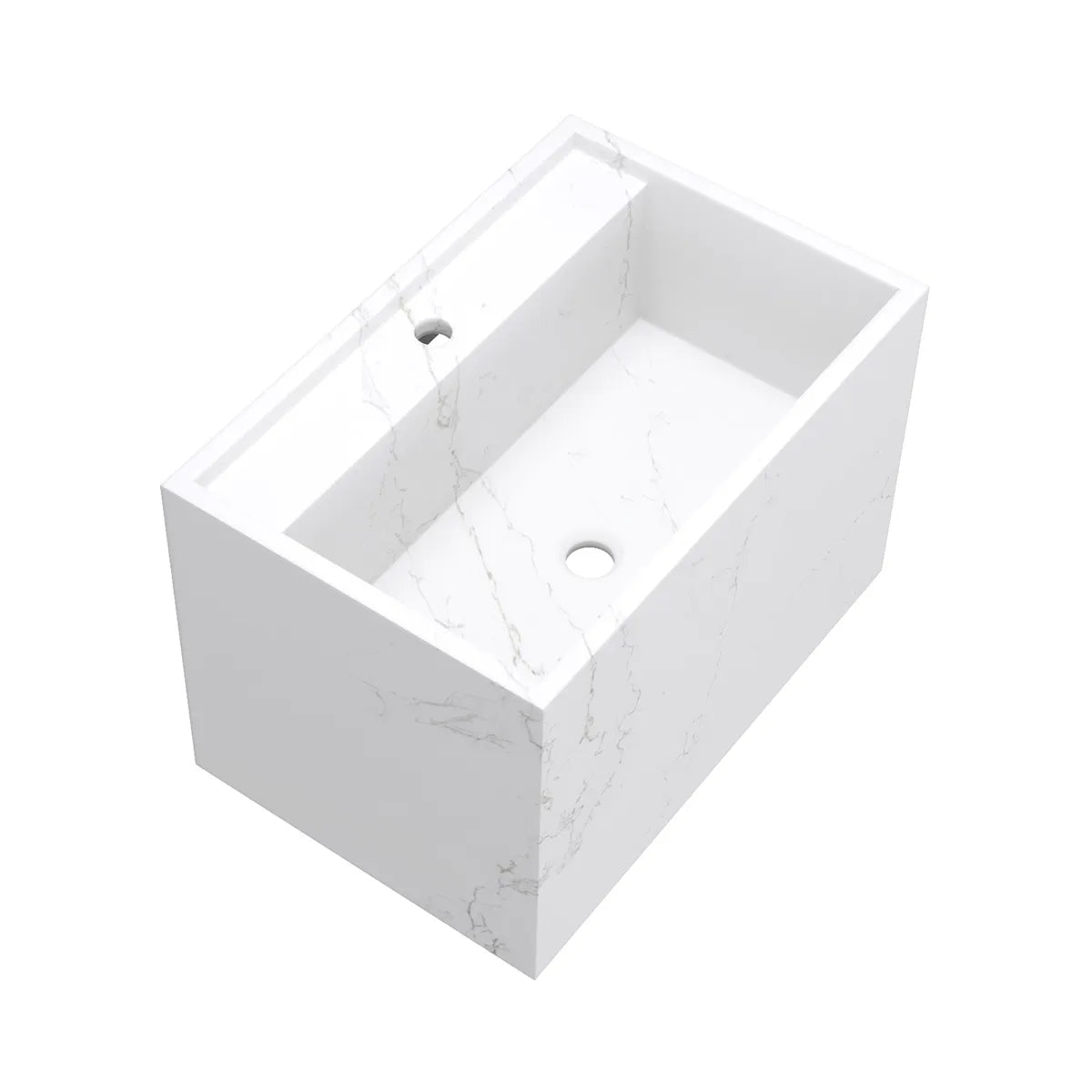 Wat 'm zo fantastisch maakt, is natuurlijk de marmerlook. Zoals de naam al zegt, is het geen echt marmer. Het grootste voordeel? De prijs! Een stúk goedkoper, maar wel even mooi als echt marmer en ook boordevol kwaliteit. De wastafel is gemaakt van composietmateriaal, waardoor de wastafel extra sterk is en niet gevoelig voor krassen. En het onderhoud is ook een stuk eenvoudiger. Fijn, hè?