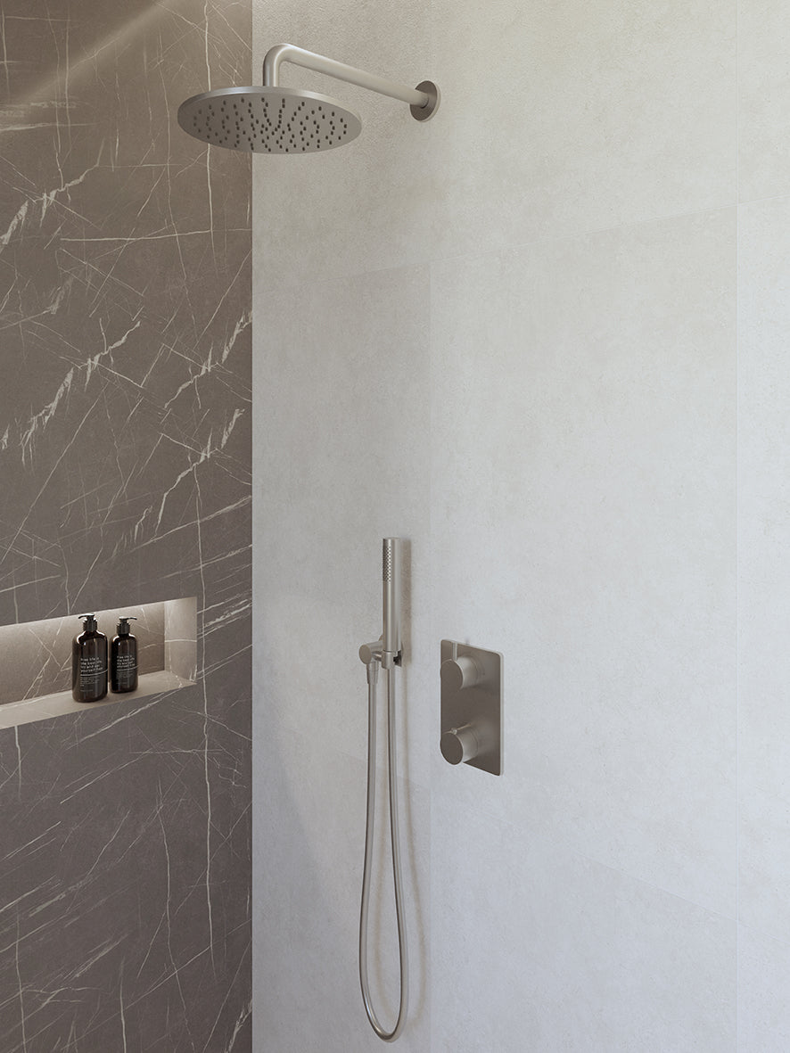 Caral inbouwthermostaat compleet met hoofddouche 25 cm, staafhanddouche, doucheslang en -arm geborsteld staal