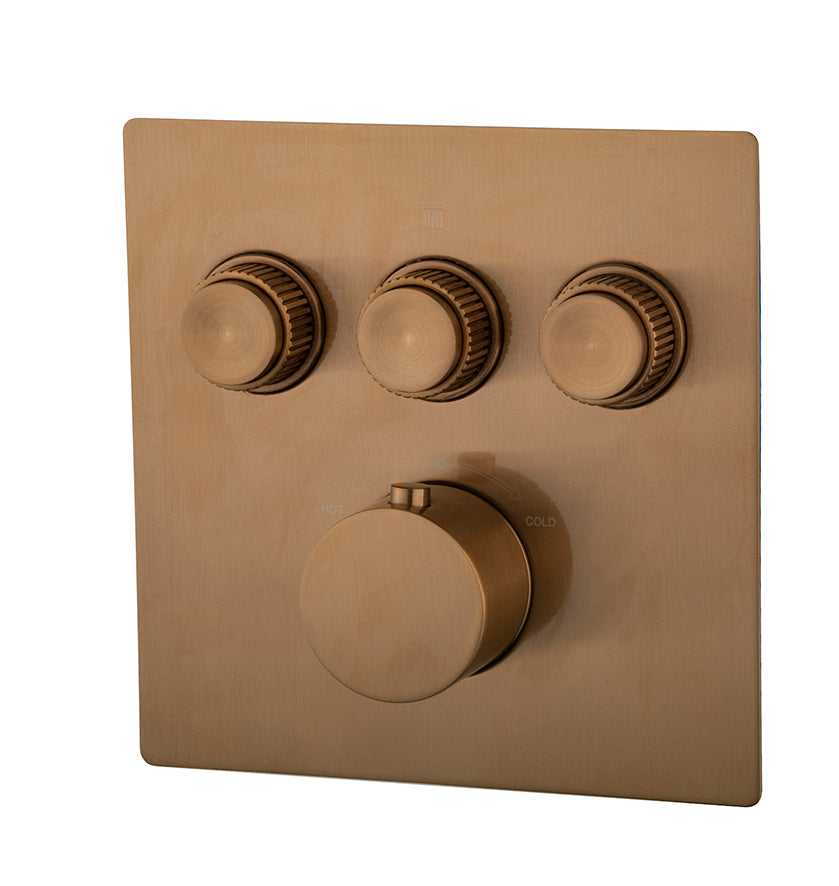Caral Klik Pro afbouwdeel inbouwthermostaat 3 weg geborsteld brons koper