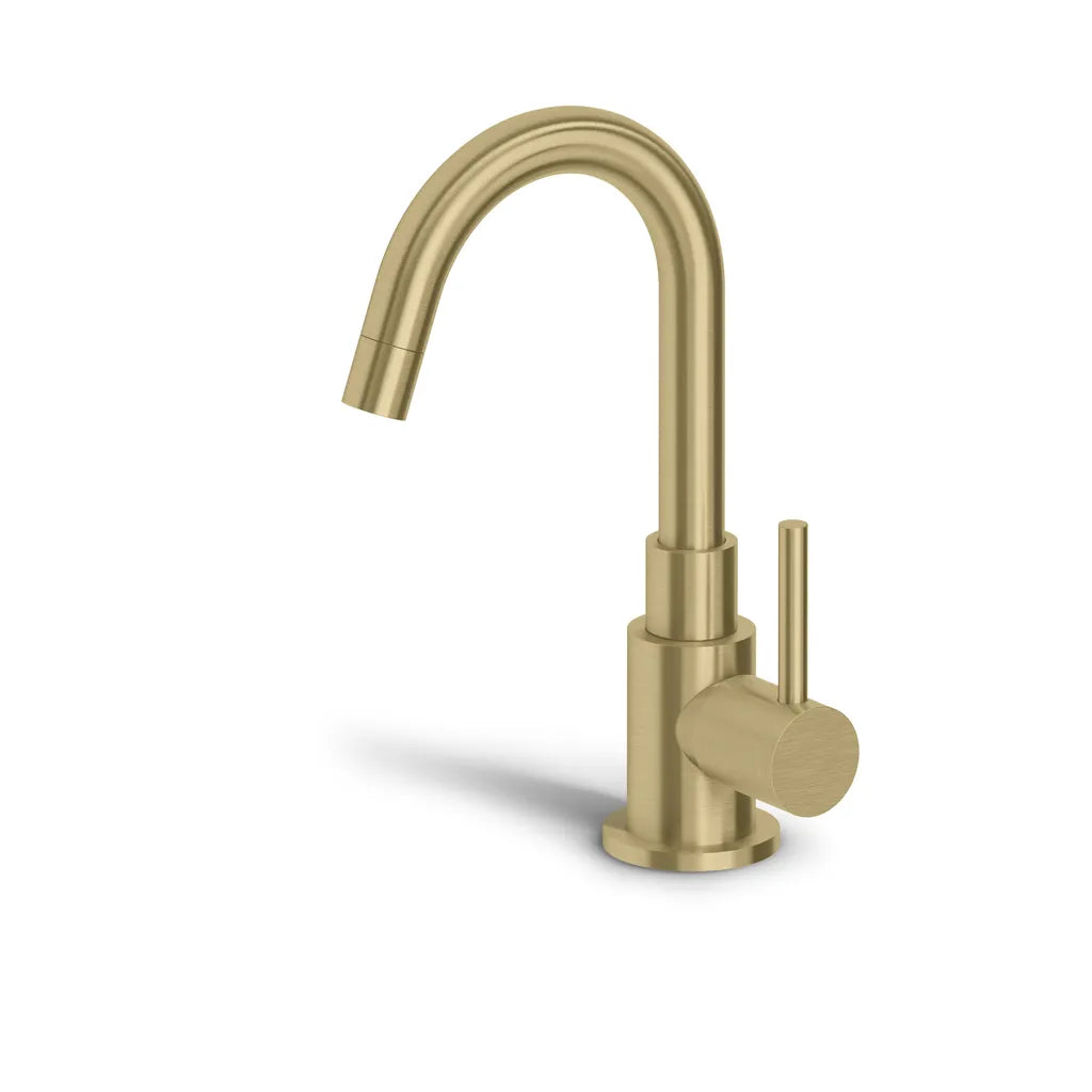 Freddo 1 fonteinkraan met draaibare uitloop in luxe goud geb. PVD. Combineert functionaliteit met een chique uitstraling. Perfect voor het creëren van een statement in uw badkamer.