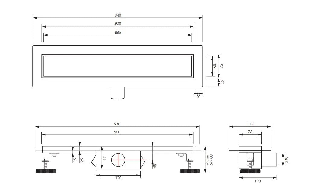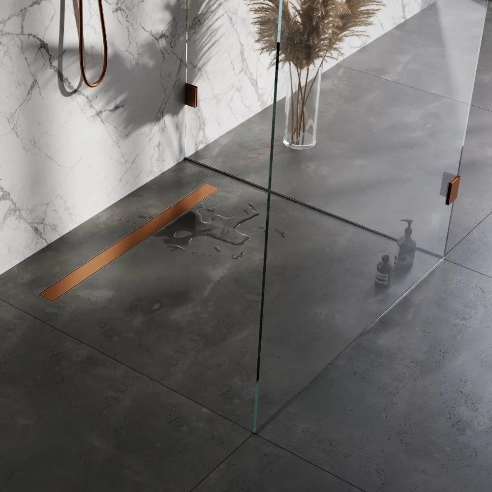 Met deze douchegoot kun je twee kanten op. Je kunt kiezen om de douchegoot zichtbaar te maken en het rooster bovenop te leggen, of je kunt kiezen voor het tegelinlegrooster waarmee je de douchegoot doortrekt in de tegels. Het rooster plaats je in de vloer en verstel je in hoogte door de verstelbare poten onder de douchegoot. Door de flens leg je de omliggende tegels eenvoudig aan de douchegoot. Alles kun je zo mooi afwerken en is jouw vloer volledig afgesloten van water.