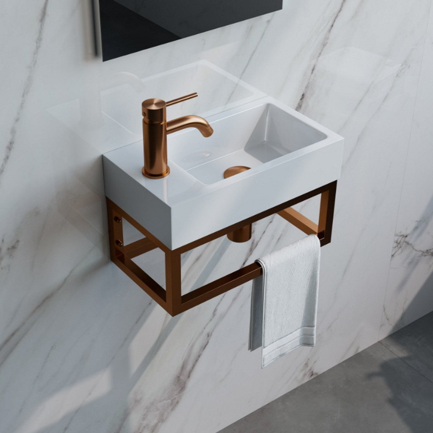 De fonteinbak is gemaakt van mineraalmarmer met een afmeting van 40x22cm, de hoogte van de fonteinbak is 20.5cm. De fonteinset is geschikt voor wandmontage. De fonteinbak is voorzien van een overloopgat waardoor het overtollige water makkelijk weg kan stromen. Als een extra plus is de fonteinbak omkeerbaar en kan deze zowel linksom als rechtsom geplaatst worden!