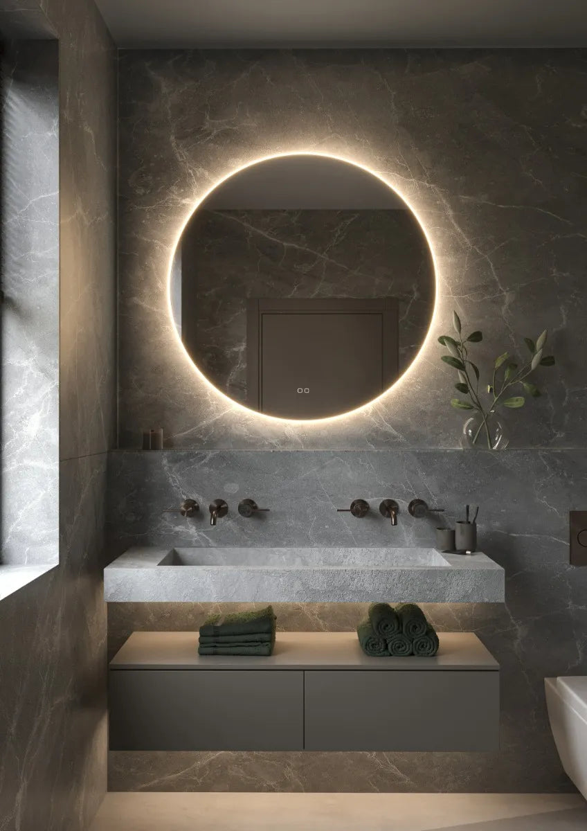 Het mooie aan de Phantom is dat je de functies helemaal naar wens kunt instellen. ’s Ochtends geen fel licht in je gezicht? Zet alleen de backlight aan, waardoor er een sfeervol licht tegen de wand schijnt. Toch liever licht aan de voorkant? Dat kan ook! Is het te fel, dan dim je eenvoudig of pas je de lichtkleur aan. Bovendien is de voorzijde strak afgewerkt: de verlichting zie je niet wanneer deze uitstaat – voor een moderne en elegante uitstraling.