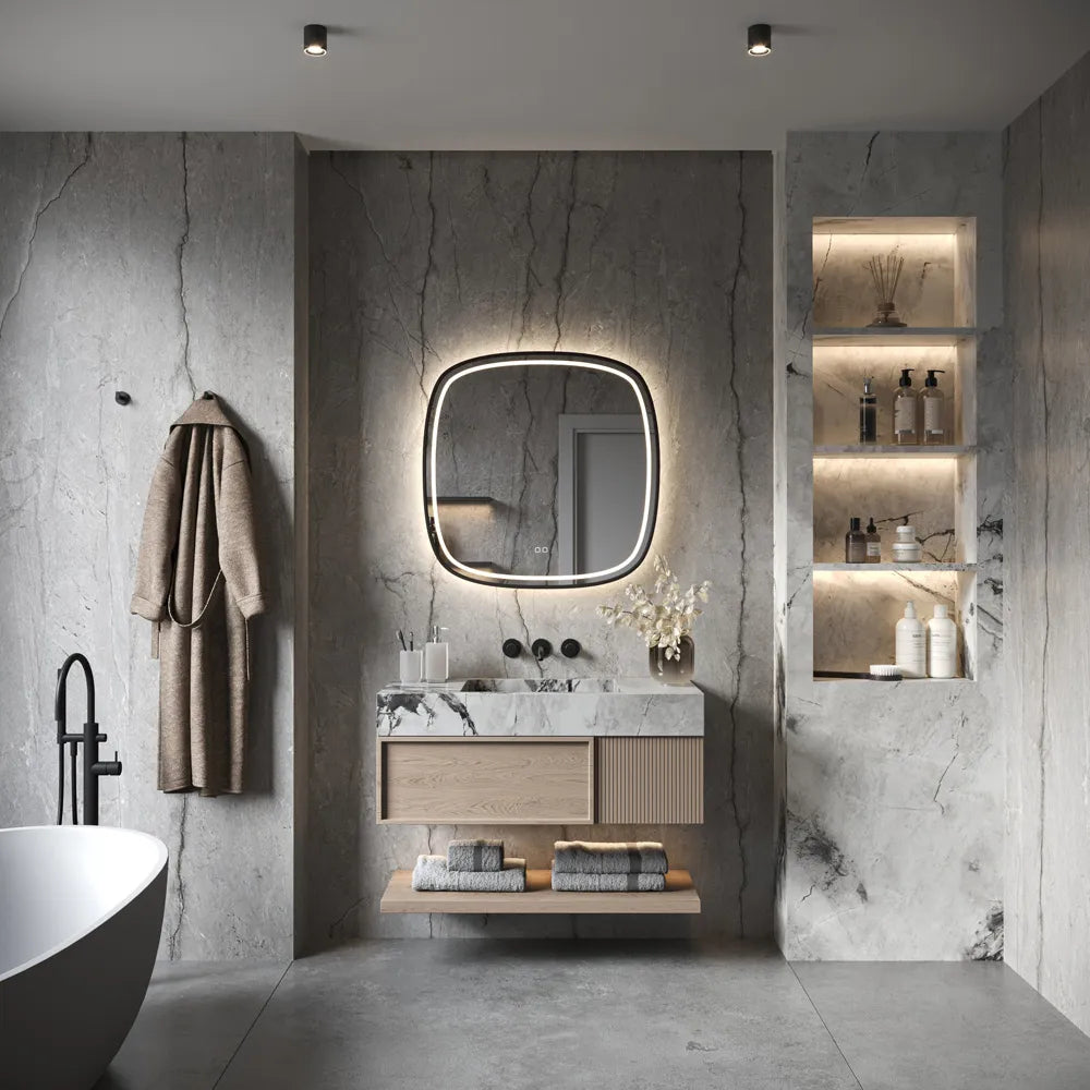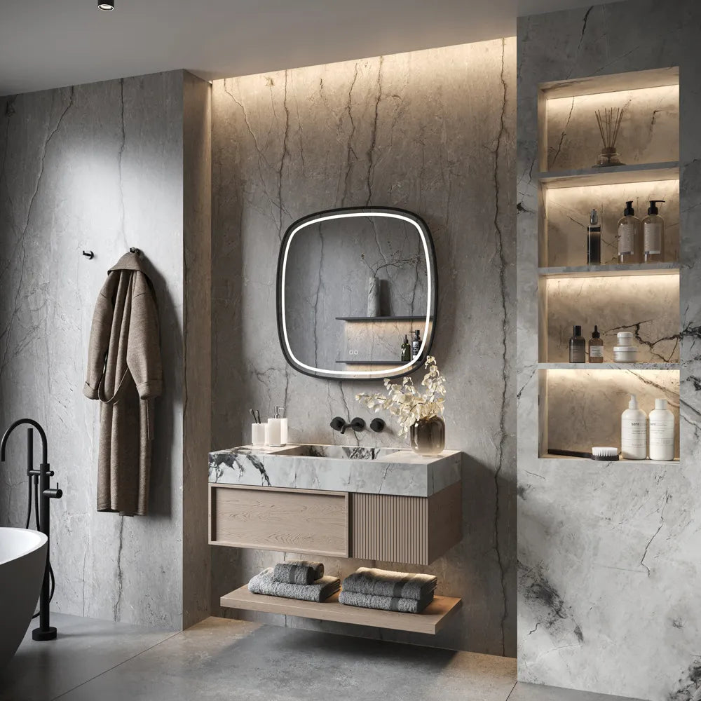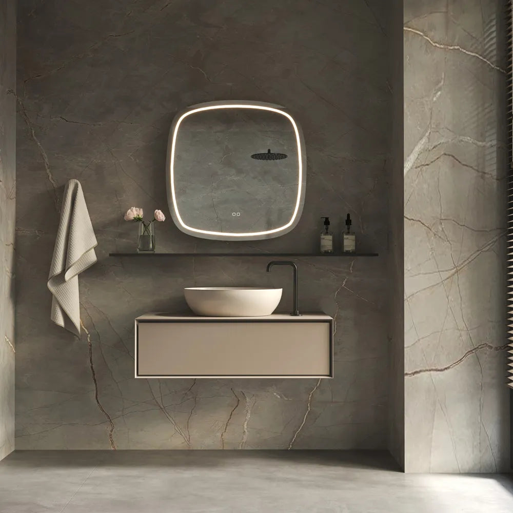 Een ander groot voordeel is de geïntegreerde spiegelverwarming. Geen last meer van een beslagen spiegel na het douchen – binnen enkele ogenblikken is de spiegel weer helder. Bediening is super eenvoudig via de twee knopjes op de spiegel zelf.
