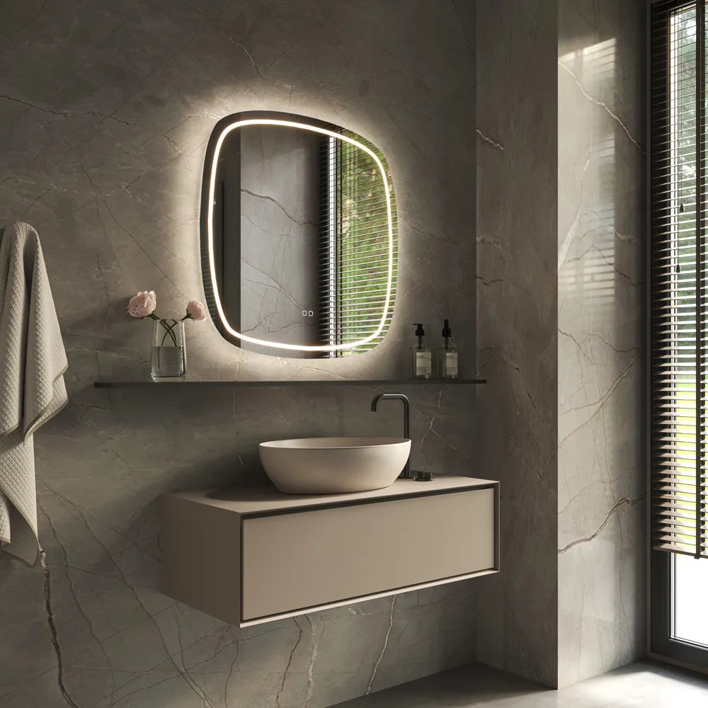 Het mooie aan de Phantom is dat je de functies helemaal naar wens kunt instellen. ’s Ochtends geen fel licht in je gezicht? Zet alleen de backlight aan, waardoor er een sfeervol licht tegen de wand schijnt. Toch liever licht aan de voorkant? Dat kan ook! Is het te fel, dan dim je eenvoudig of pas je de lichtkleur aan. Bovendien is de voorzijde strak afgewerkt: de verlichting zie je niet wanneer deze uitstaat – voor een moderne en elegante uitstraling.