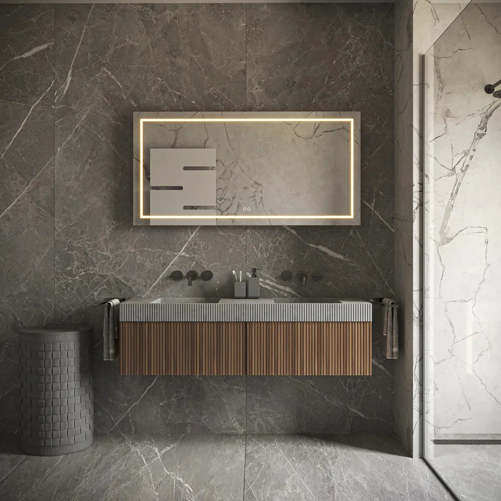 Het fijne aan deze spiegel is dat je 'm helemaal naar wens kan aanpassen. 's Ochtends moeite met veel licht in je gezicht? Dan kan je alleen de backlight verlichting aanzetten, waardoor het licht tegen de wand schijnt. Handig én sfeervol! Liever wel licht aan de voorkant? Kan gewoon! En is het je te fel, kan je 'm eenvoudig dimmen en van lichtkleur veranderen. Het mooie is dat je de verlichting aan de voorkant niet ziet zitten als je 'm niet aan hebt staan, wat zorgt voor een strakke en moderne look. Gaaf!