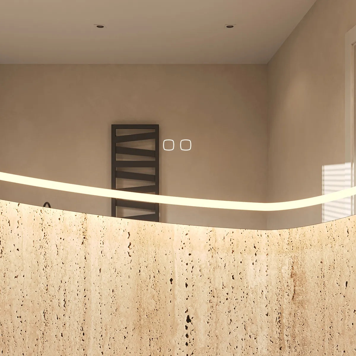 Het fijne aan deze spiegel is dat je 'm helemaal naar wens kan aanpassen. 's Ochtends moeite met veel licht in je gezicht? Dan kan je alleen de backlight verlichting aanzetten, waardoor het licht tegen de wand schijnt. Handig én sfeervol! Liever wel licht aan de voorkant? Kan gewoon! En is het je te fel, kan je 'm eenvoudig dimmen en van lichtkleur veranderen. Het mooie is dat je de verlichting aan de voorkant niet ziet zitten als je 'm niet aan hebt staan, wat zorgt voor een strakke en moderne look. Gaaf!