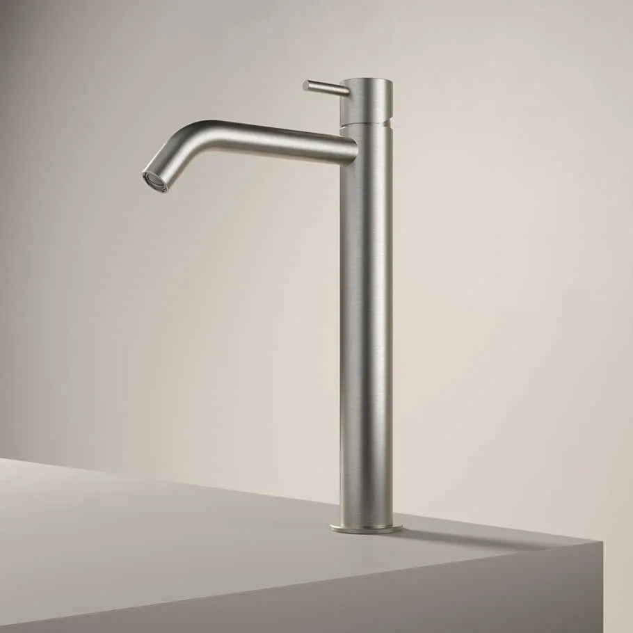 Deze wastafelkraan heeft een koude start - open je de kraan vanuit de neutrale stand dan geeft hij alleen koud water. De CV slaat dus niet aan en dat bespaart energie. Het is een opbouwkraan, dus je plaatst hem op een wastafel met kraangat. Je kunt kiezen uit 3 hoogtes: laag, middel en verhoogd. De verhoogde variant kan desgewenst naast een wastafelkom op het wastafelblad worden geplaatst.