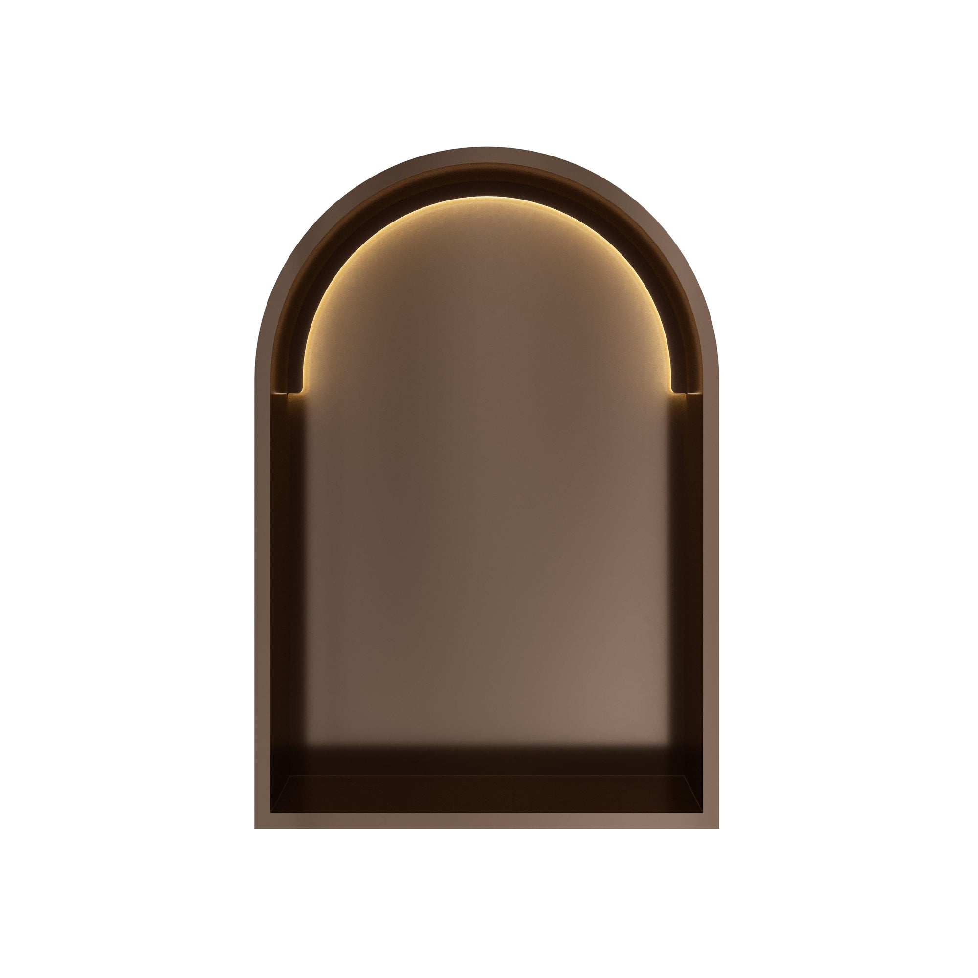 De elegante boogvorm van deze inbouwnis zorgt voor een tijdloze en verfijnde uitstraling. Het warme Tuscan bronze maakt het tot een echte blikvanger zonder te overheersen. Door het subtiele design voeg je een speels maar toch rustig element toe aan je badkamerwand. Dit maakt het eenvoudig om de nis te combineren met verschillende interieurstijlen, van modern tot klassiek. De geïntegreerde LED-verlichting accentueert de vorm en zorgt ’s avonds voor een sfeervolle ambiance, waardoor jouw badkamer een uitnodigende plek wordt om te ontspannen.
