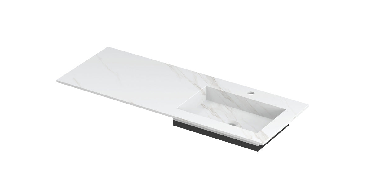 Ink Post Wastafel keramische slab envelop bak rechts met 1 kraangat - Calacatta mat - 120x45x1cm - 0210630