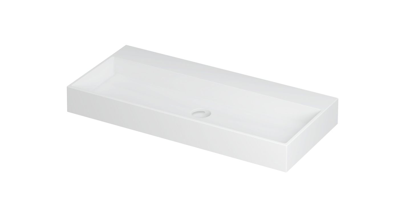 Ink United wastafel - porselein zonder kraangat incl. porseleinen click plug en verborgen overloop systeem - Mat Wit - 100x45 cm - 0206062