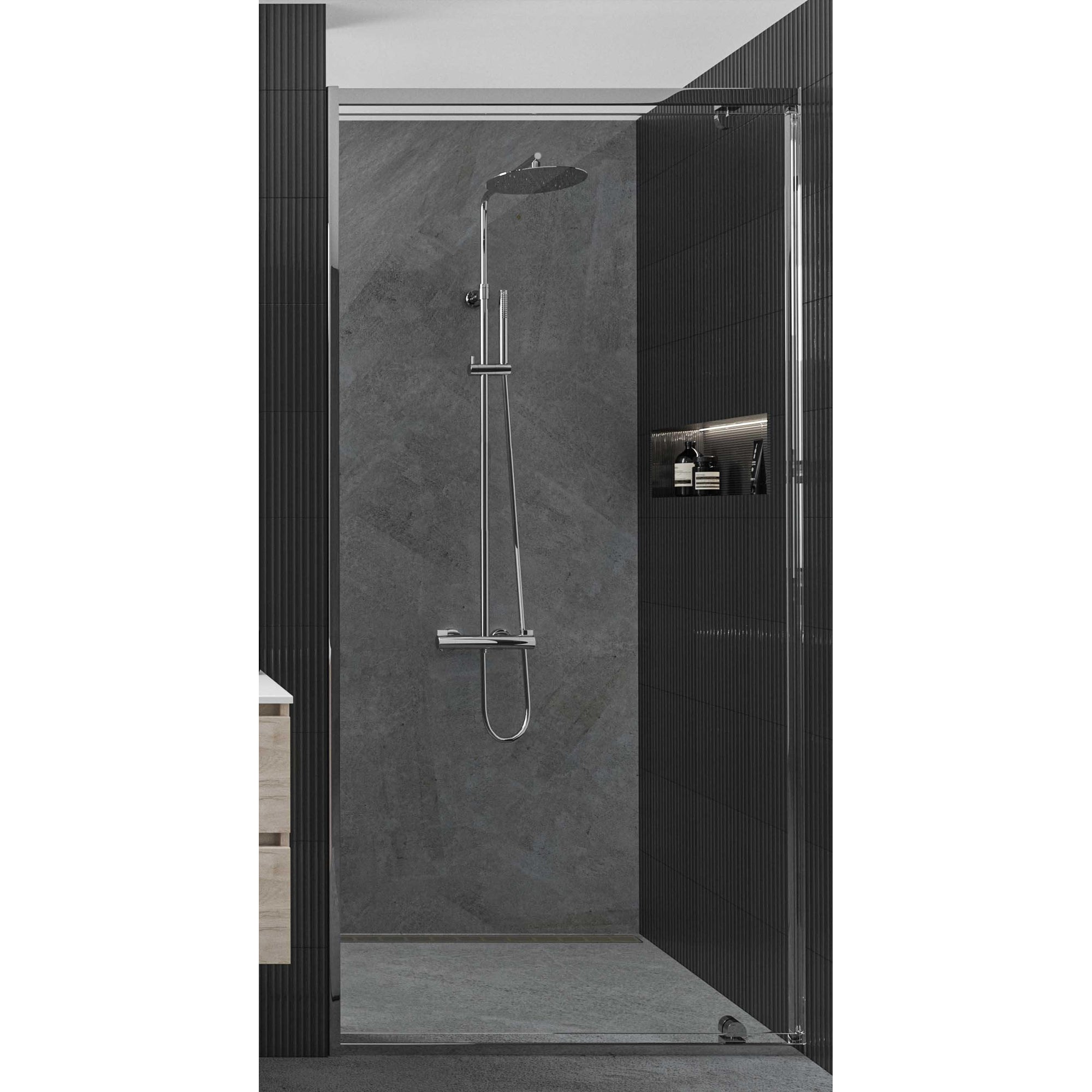 De IVY Pact Regendoucheset 1 opbouw combineert functionaliteit met een eigentijds design. De slanke hoofddouche van 20cm zorgt voor een gelijkmatige waterverdeling en een ontspannende regenbui. De chroomafwerking voegt een vleugje elegantie toe aan je badkamer, terwijl de handdouche met 3 standen zorgt voor extra comfort en gemak tijdens het douchen. Met zijn stijlvolle uitstraling is deze doucheset een blikvanger in elke badkamer.