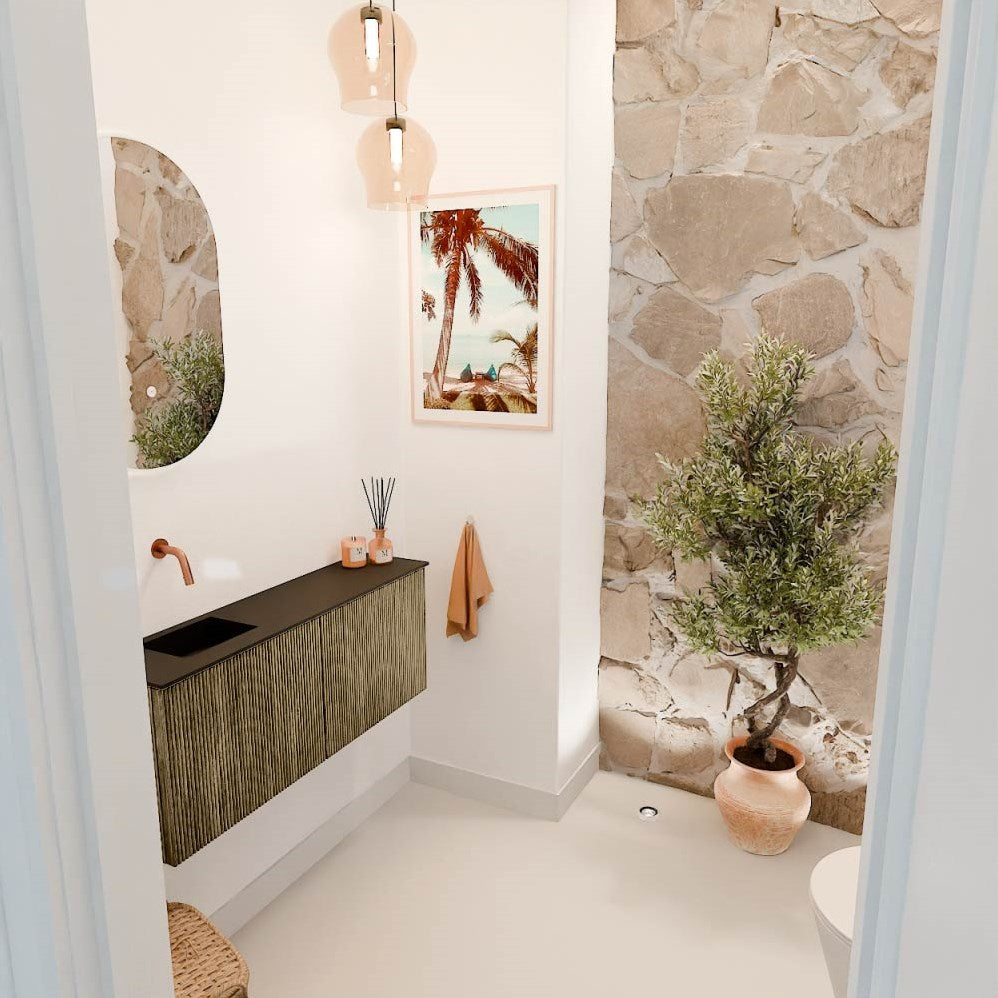 JOYA 100cm toiletmeubel kleur Dusk. Wastafel FAYE positie Links Zonder kraangat kleur Urban.