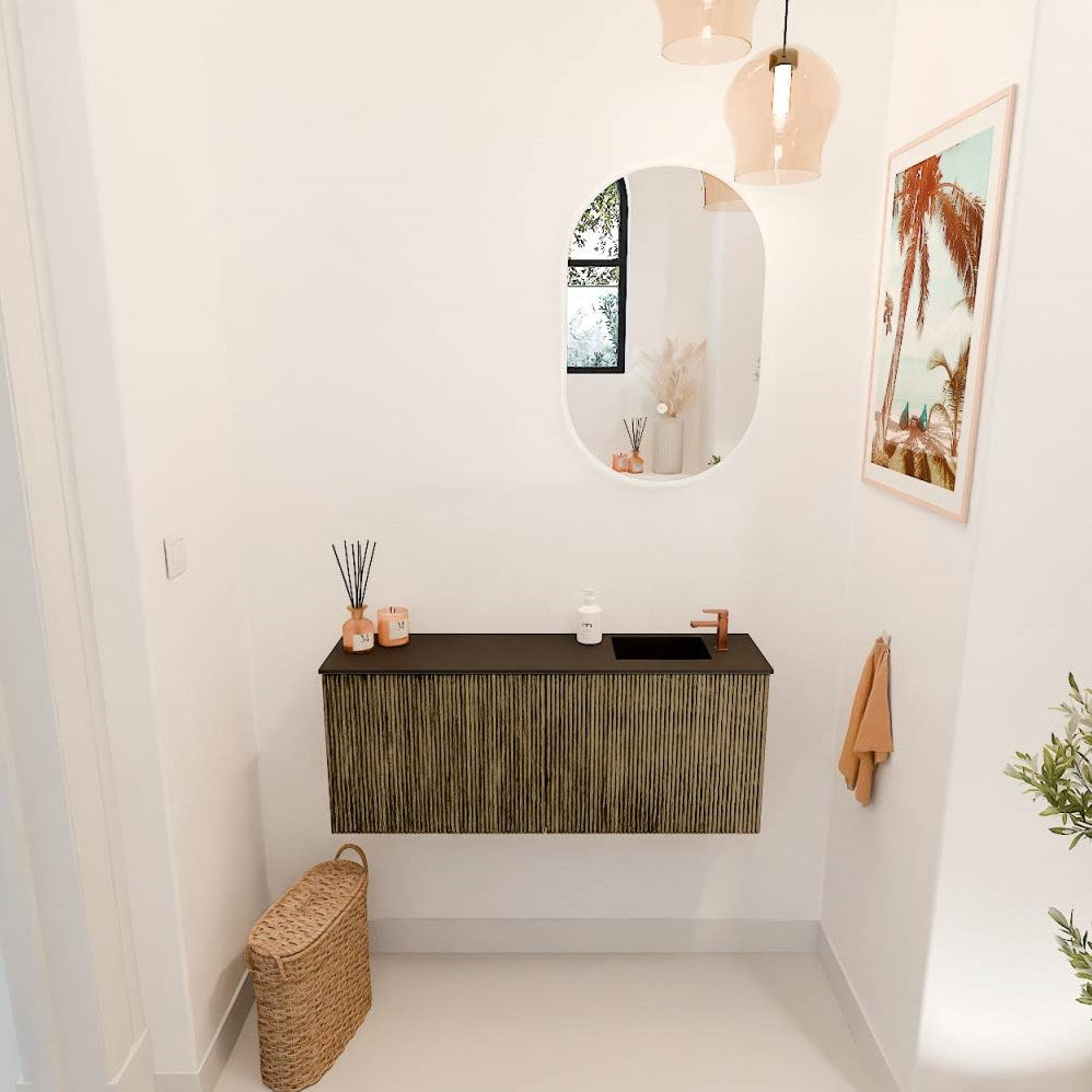 JOYA 100cm toiletmeubel kleur Dusk. Wastafel FAYE positie Rechts 1 kraangat kleur Urban.