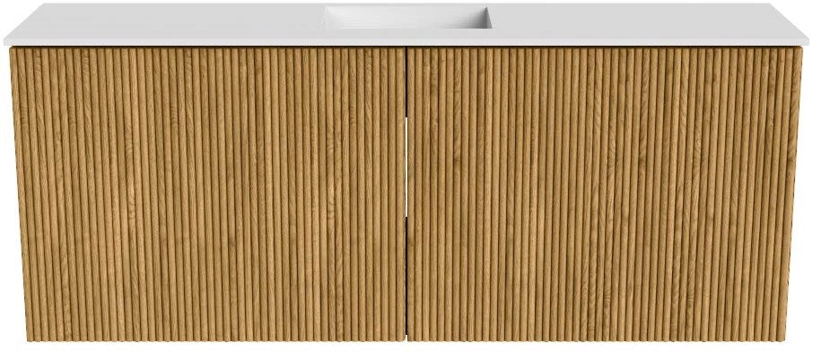 JOYA 100cm toiletmeubel kleur Oak. Wastafel FAYE positie Midden Zonder kraangat kleur Talc.