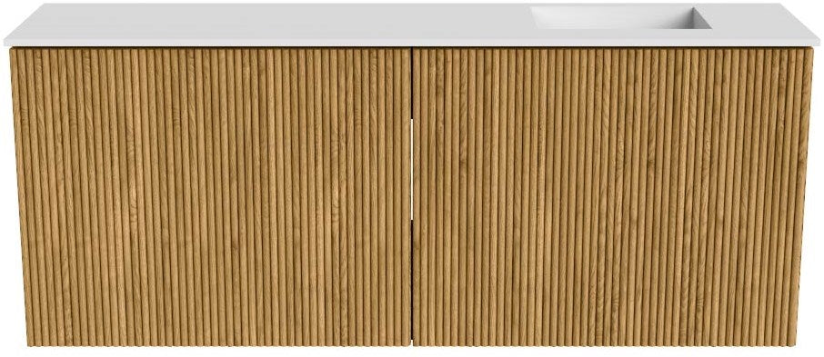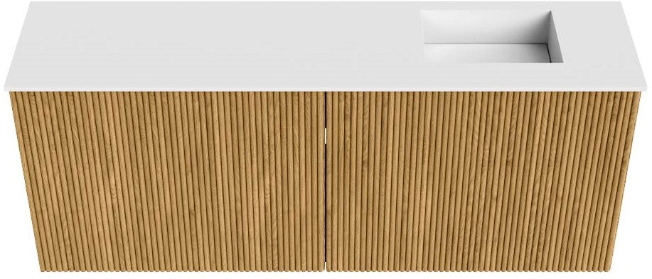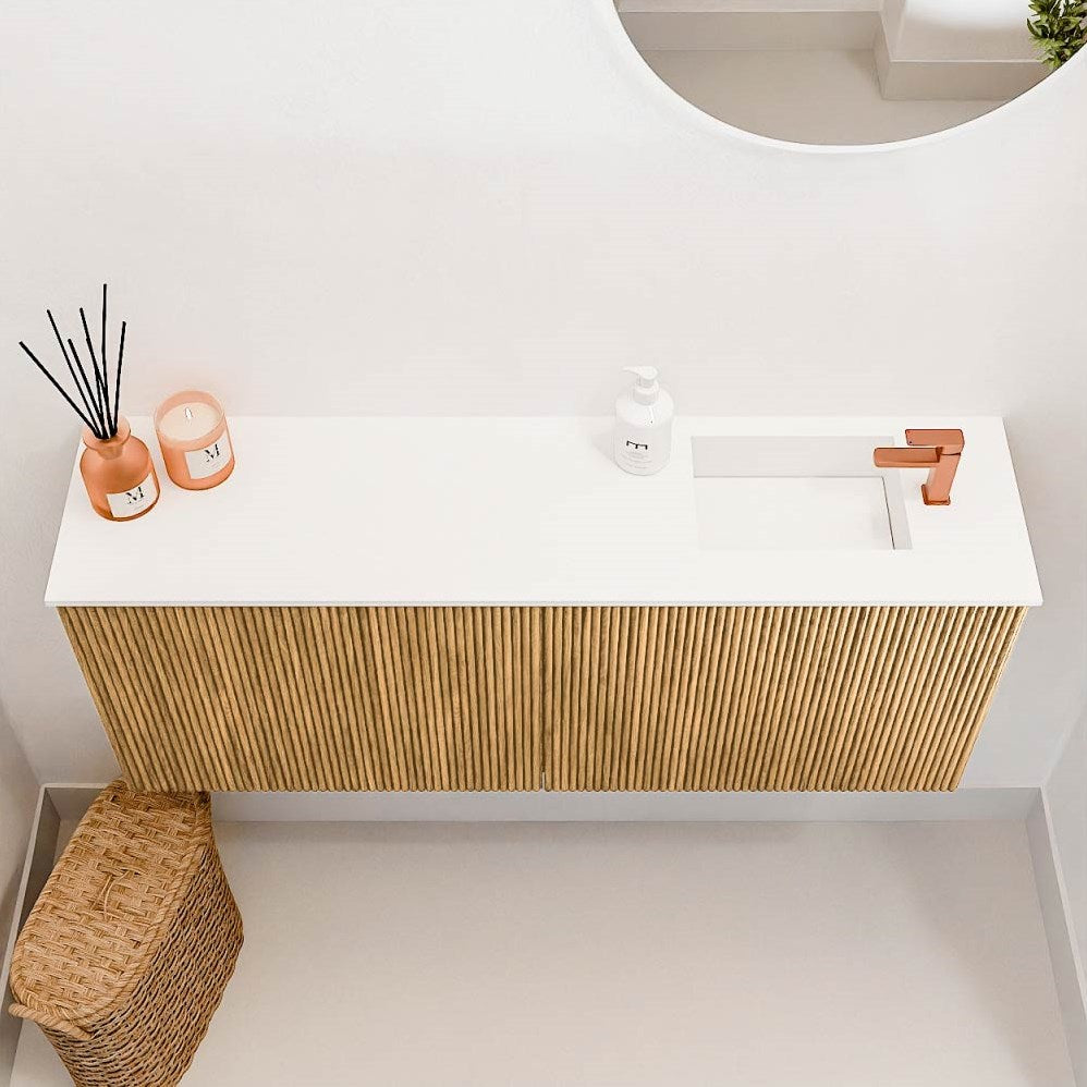 JOYA 100cm toiletmeubel kleur Oak. Wastafel FAYE positie Rechts 1 kraangat kleur Talc.