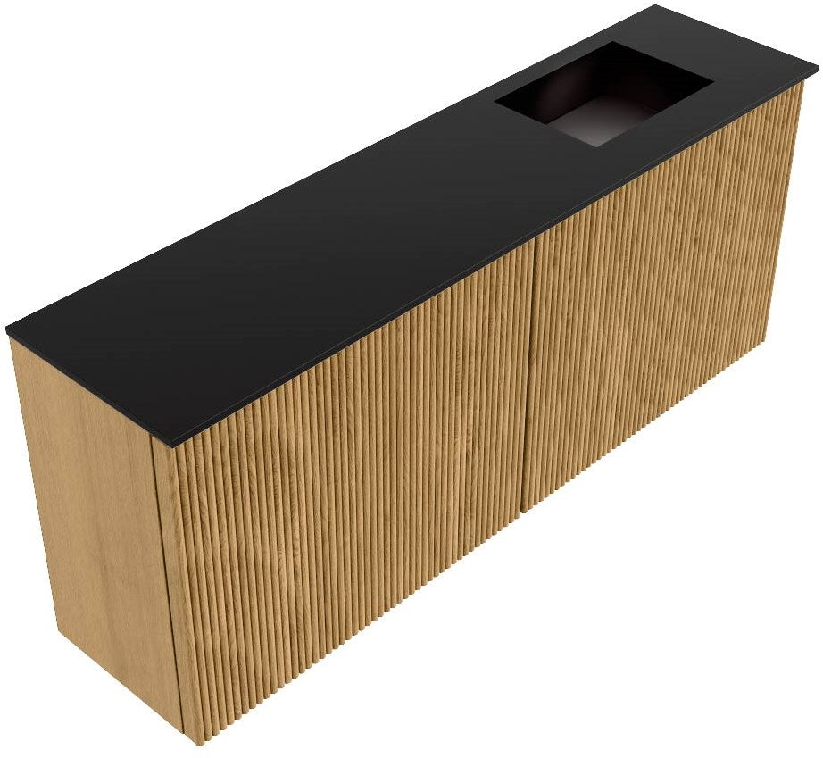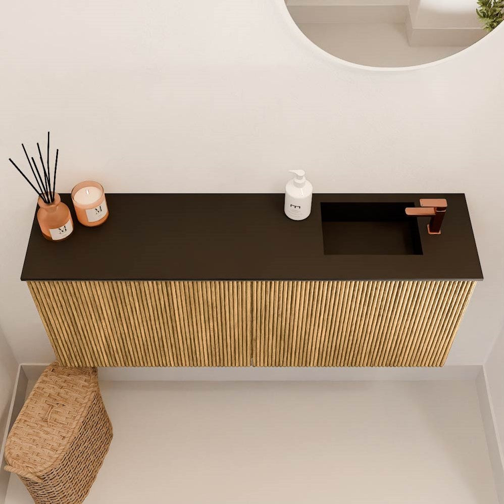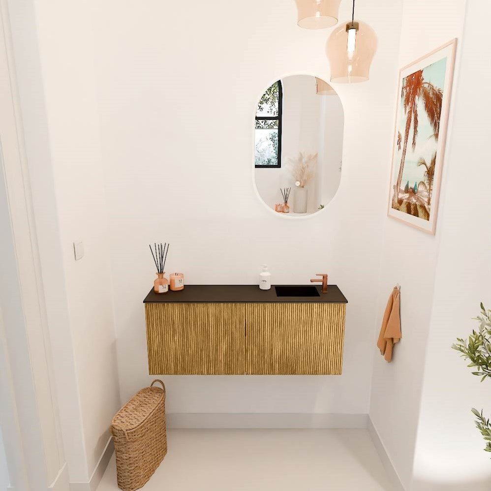JOYA 100cm toiletmeubel kleur Oak. Wastafel FAYE positie Rechts 1 kraangat kleur Urban.