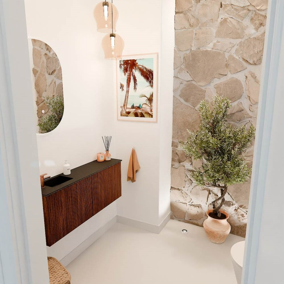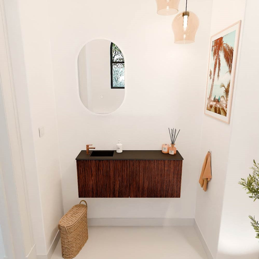 JOYA 100cm toiletmeubel kleur Ruby. Wastafel FAYE positie Links 1 kraangat kleur Urban.