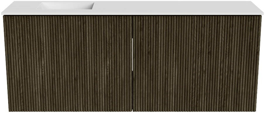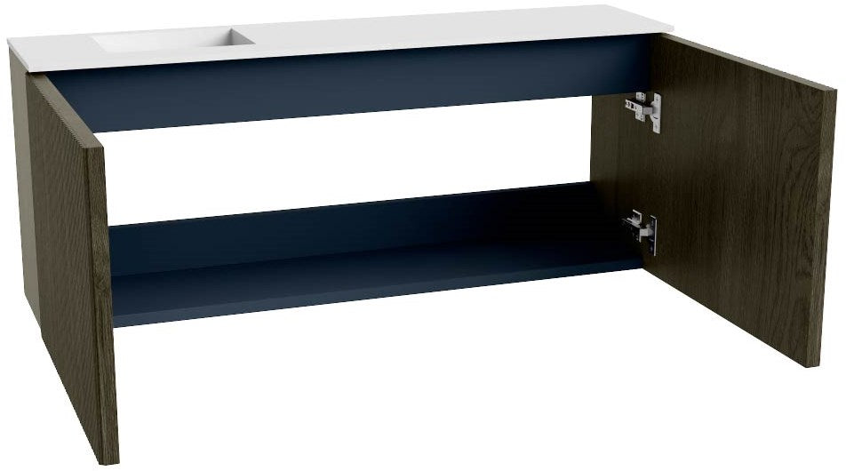 JOYA 100cm toiletmeubel kleur Shadow. Wastafel FAYE positie Links 1 kraangat kleur Talc.