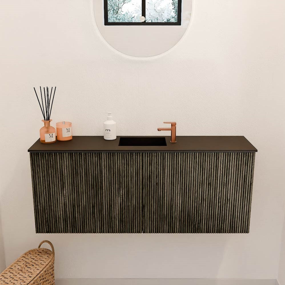 JOYA 100cm toiletmeubel kleur Shadow. Wastafel FAYE positie Midden 1 kraangat kleur Urban.