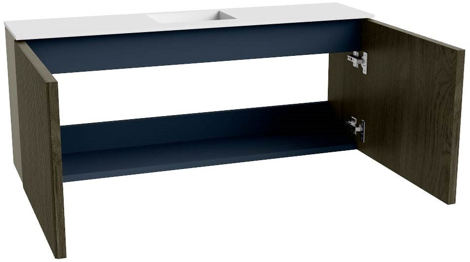 JOYA 100cm toiletmeubel kleur Shadow. Wastafel FAYE positie Midden Zonder kraangat kleur Talc.