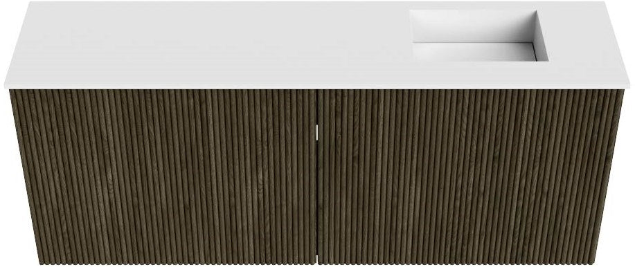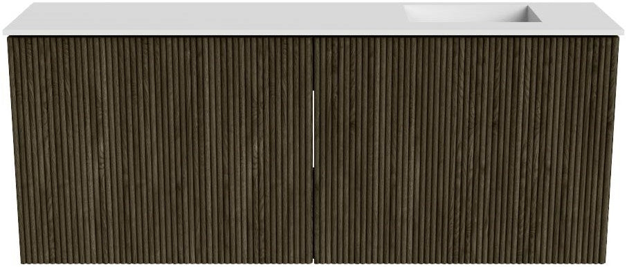 JOYA 100cm toiletmeubel kleur Shadow. Wastafel FAYE positie Rechts 1 kraangat kleur Talc.