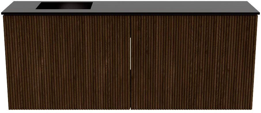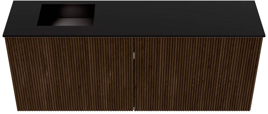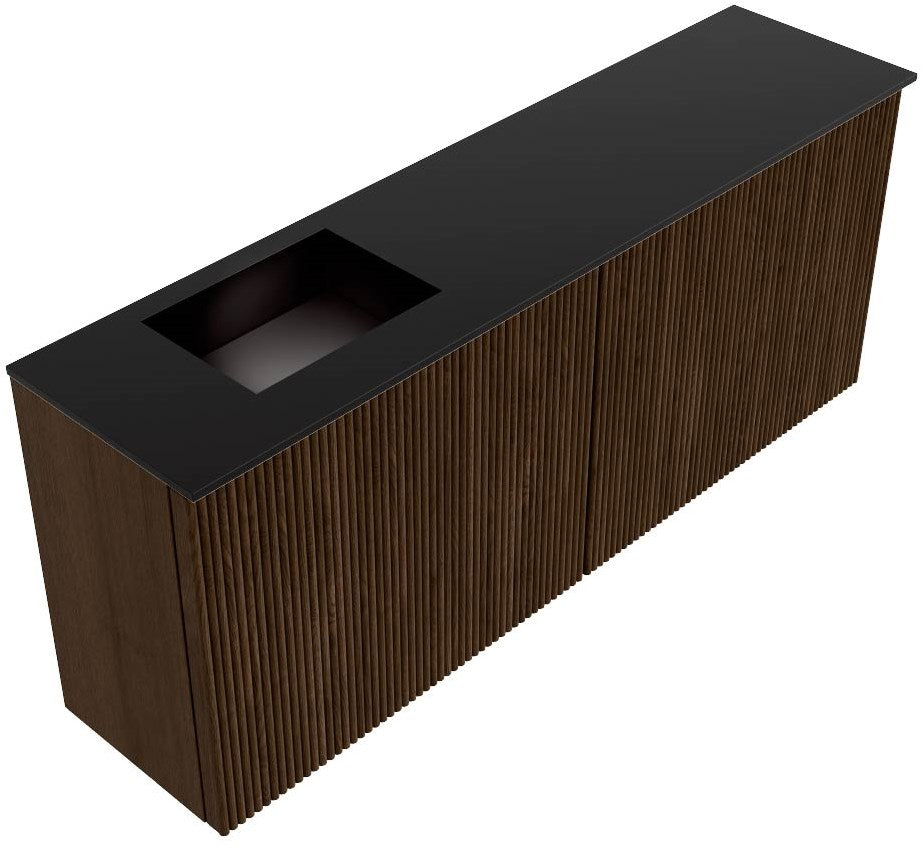JOYA 100cm toiletmeubel kleur Walnut. Wastafel FAYE positie Links 1 kraangat kleur Urban.