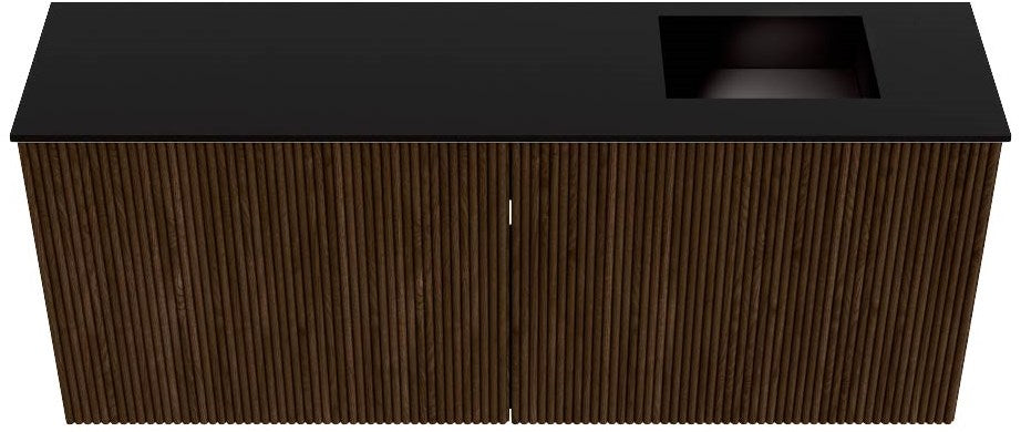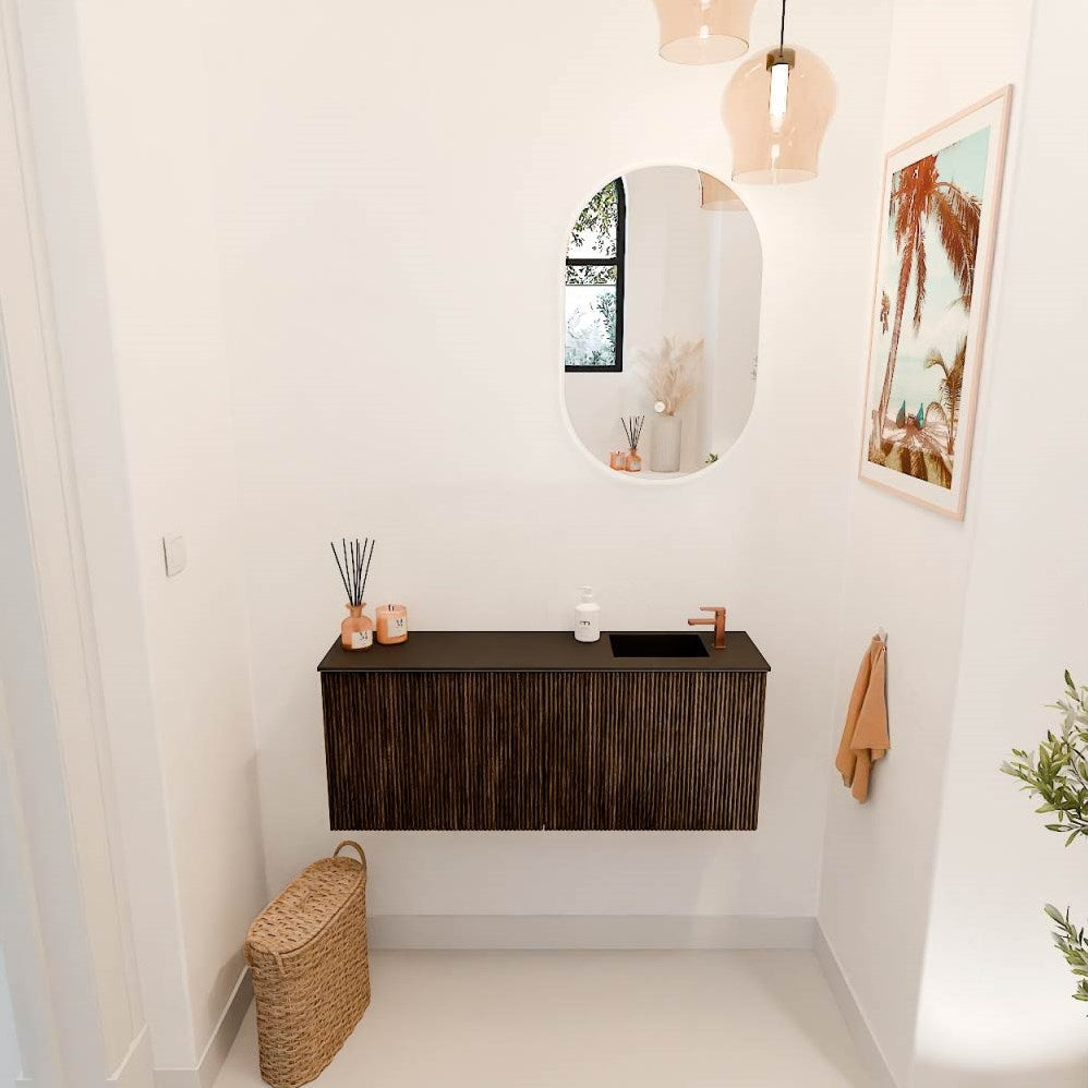 JOYA 100cm toiletmeubel kleur Walnut. Wastafel FAYE positie Rechts 1 kraangat kleur Urban.
