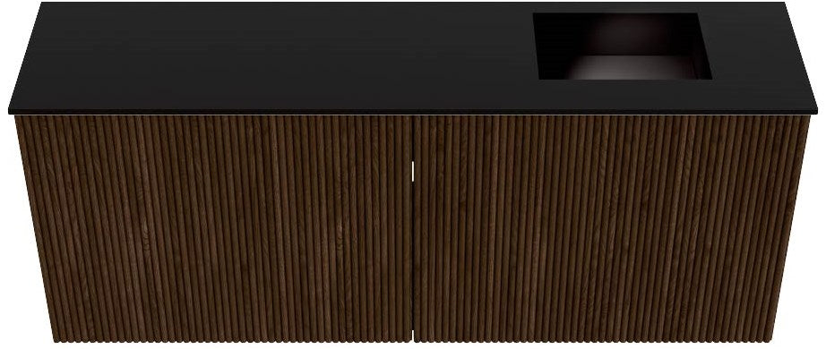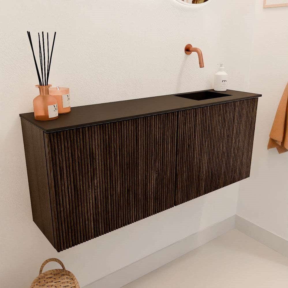 JOYA 100cm toiletmeubel kleur Walnut. Wastafel FAYE positie Rechts Zonder kraangat kleur Urban.