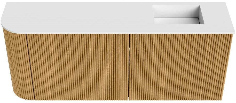 JOYA 101,6cm toiletmeubel ronding links kleur Oak. Wastafel FAYE positie Rechts 1 kraangat kleur Talc.